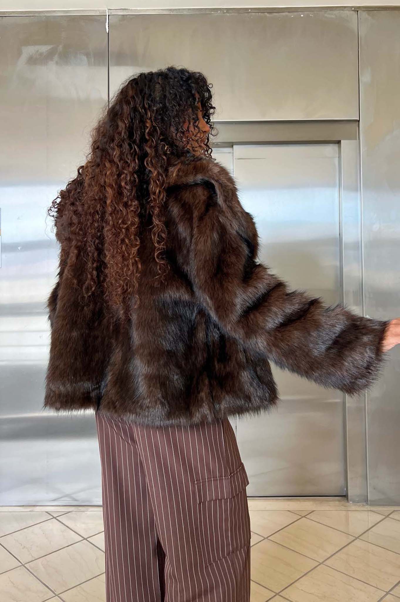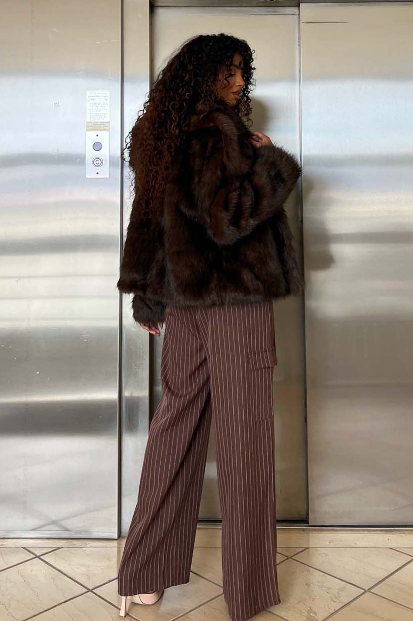 Οικολογική κοντή γούνα με κουμπιά και τσέπες. Μήκος 55cm, στήθος 120cm, μανίκι 55cm.