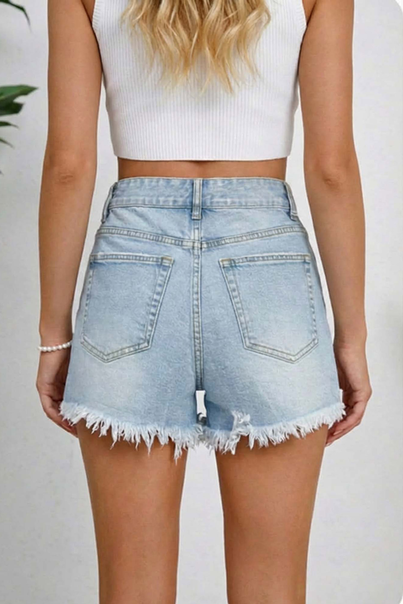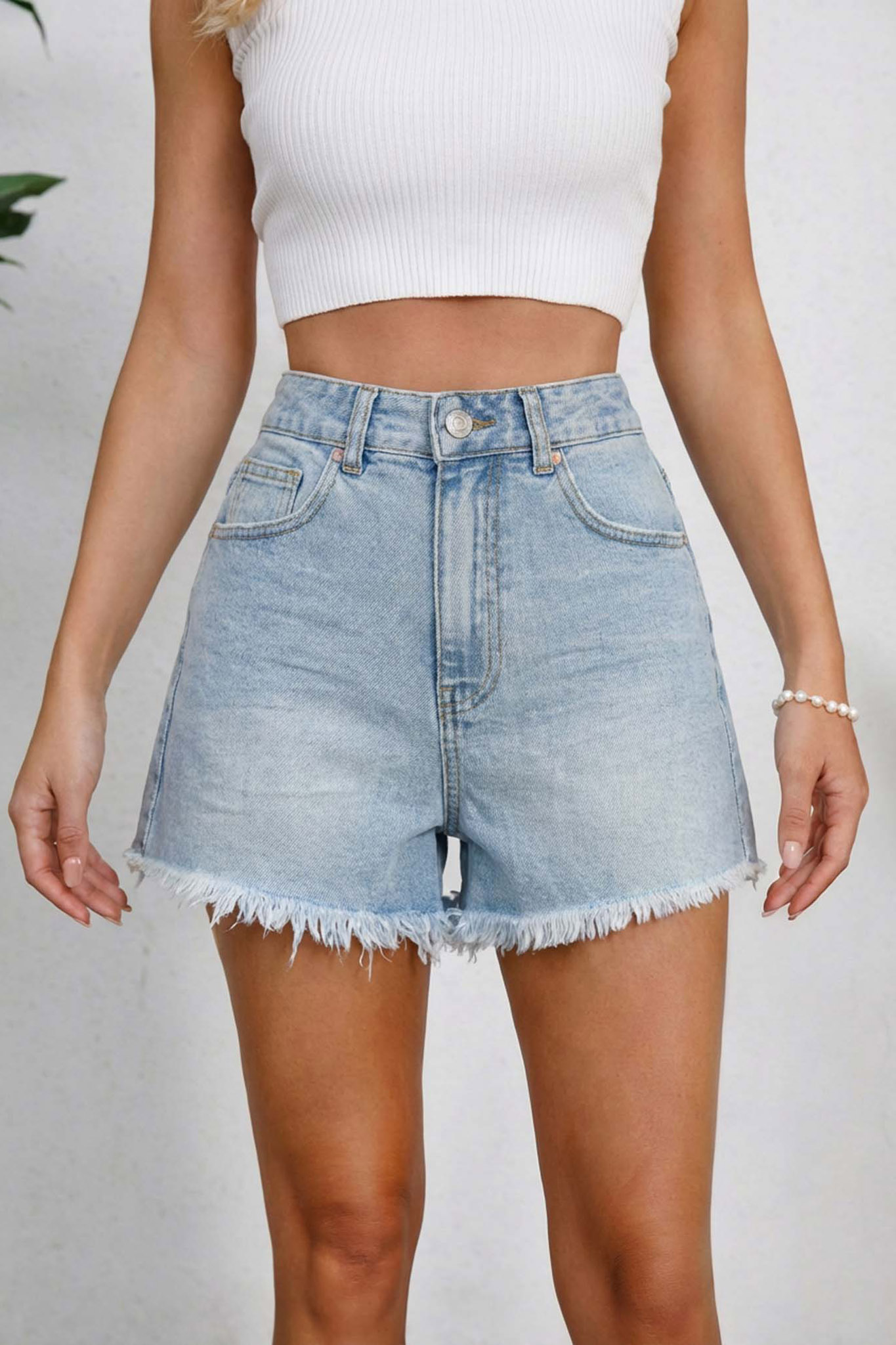 Τζιν σορτς πεντάτσεπο με ξέφτια στο τελείωμα.