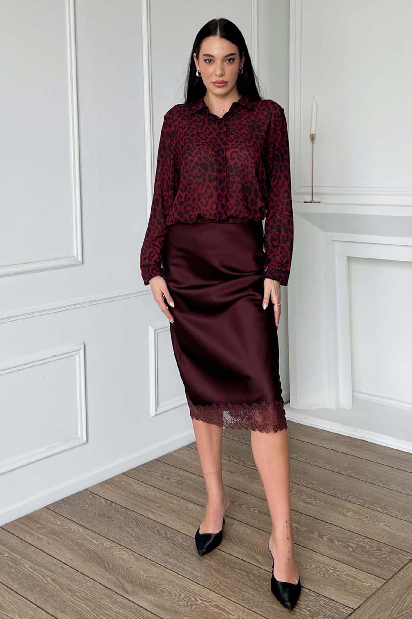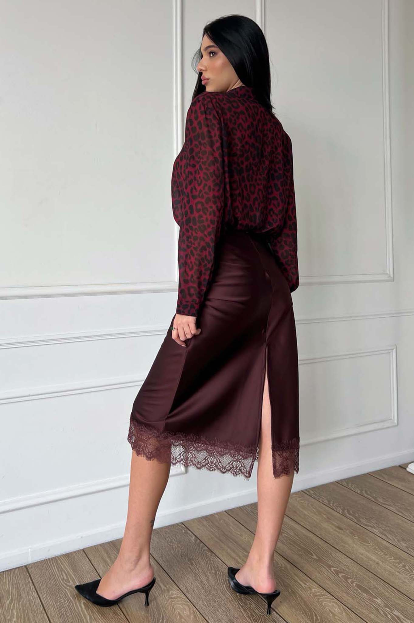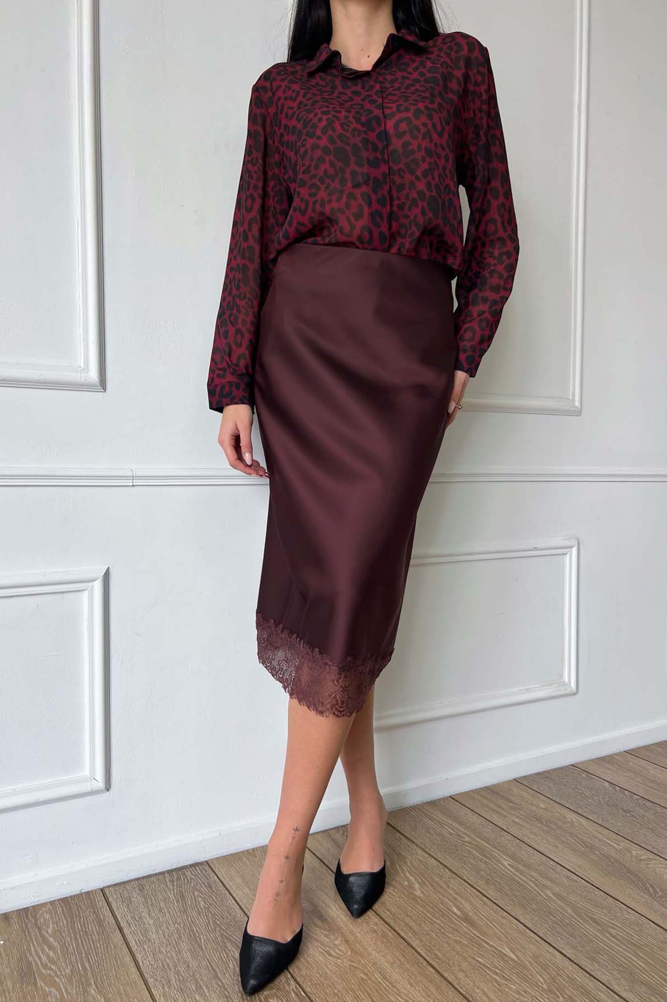 Μίντι φούστα με δαντέλα στο τελείωμα και σκίσιμο στο πίσω μέρος. Μήκος 85cm, μέση 38cm
