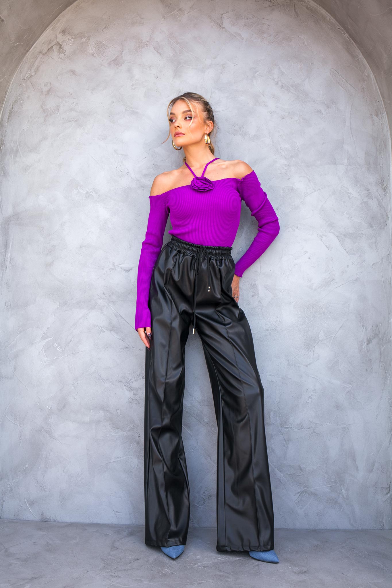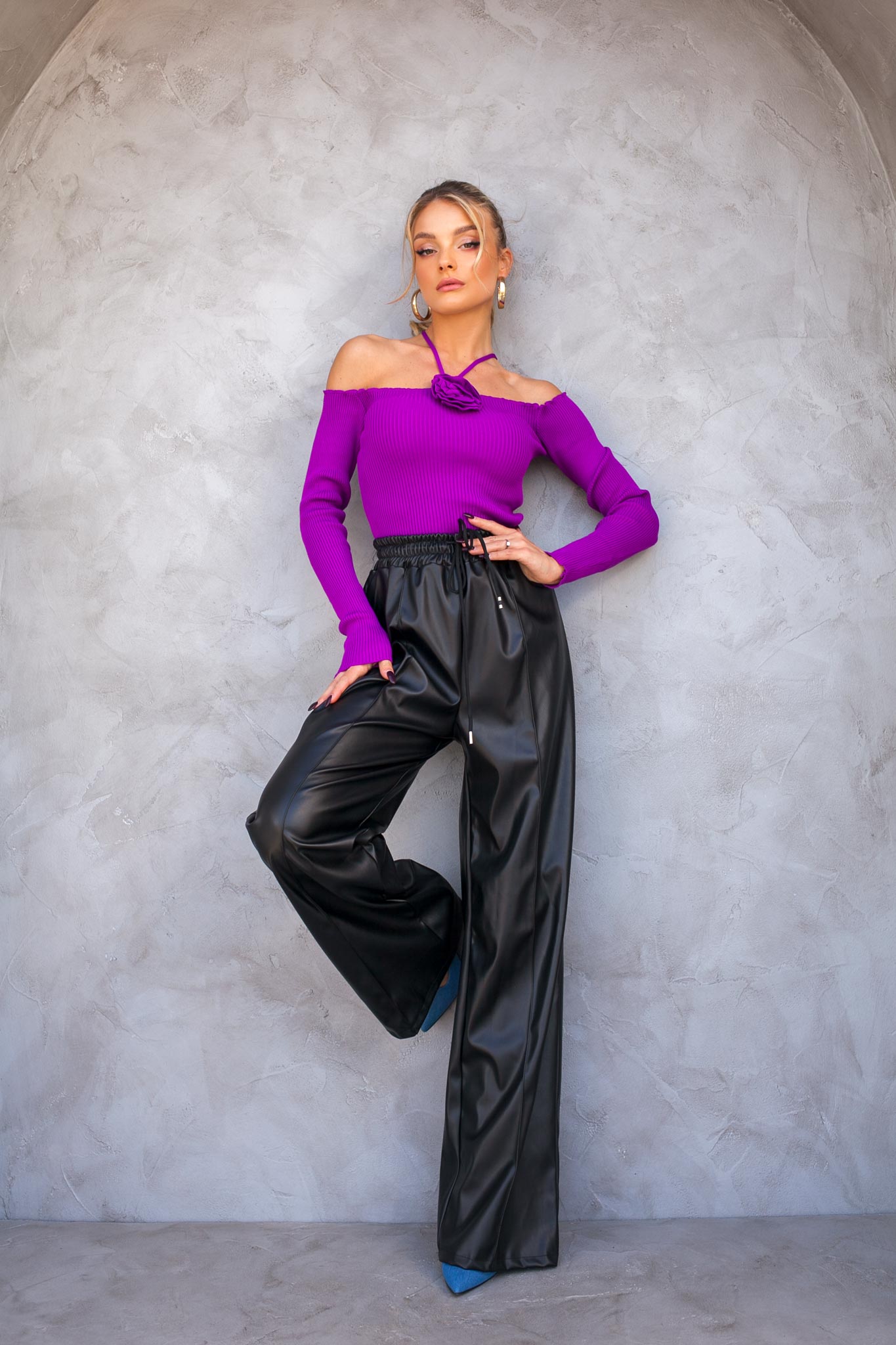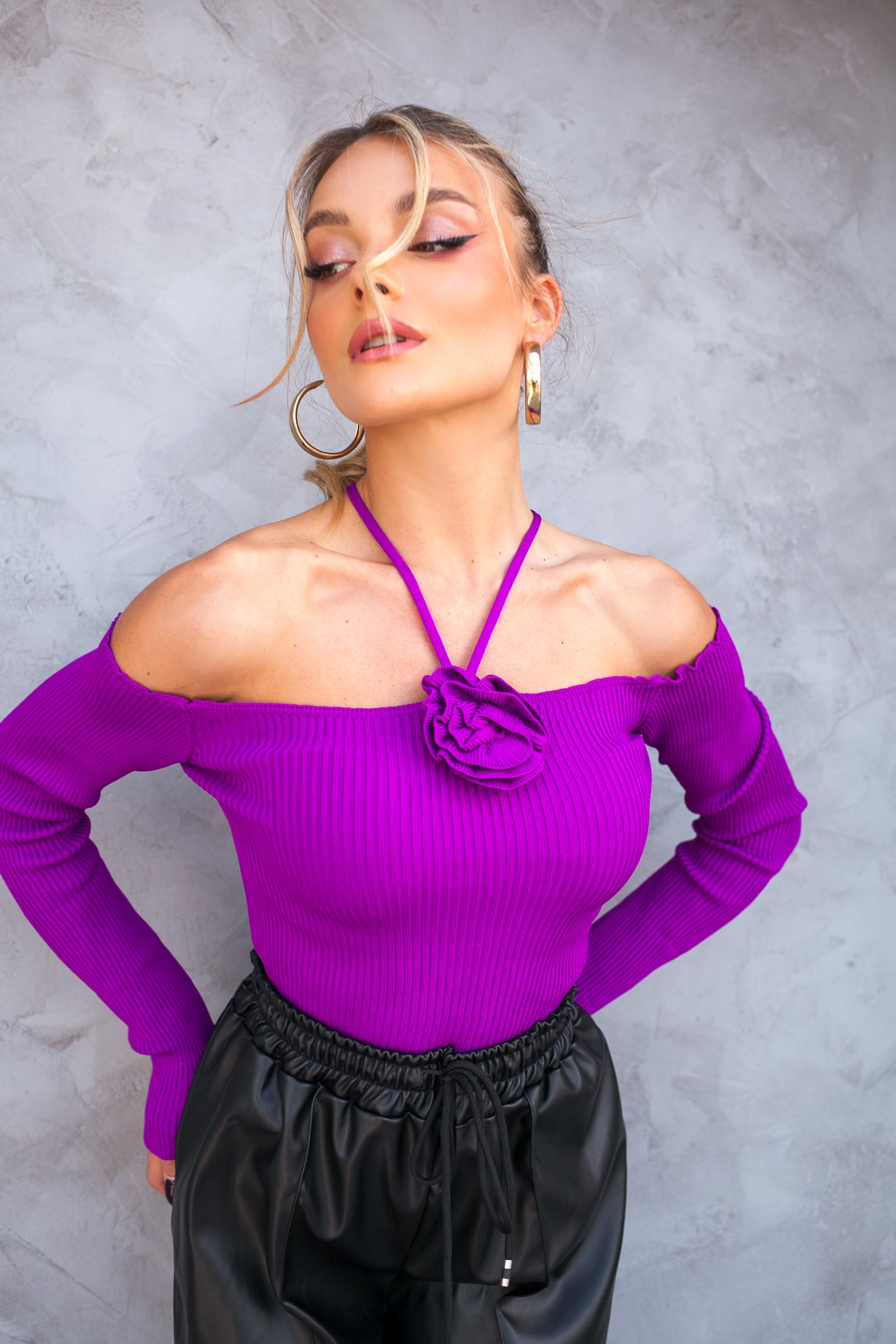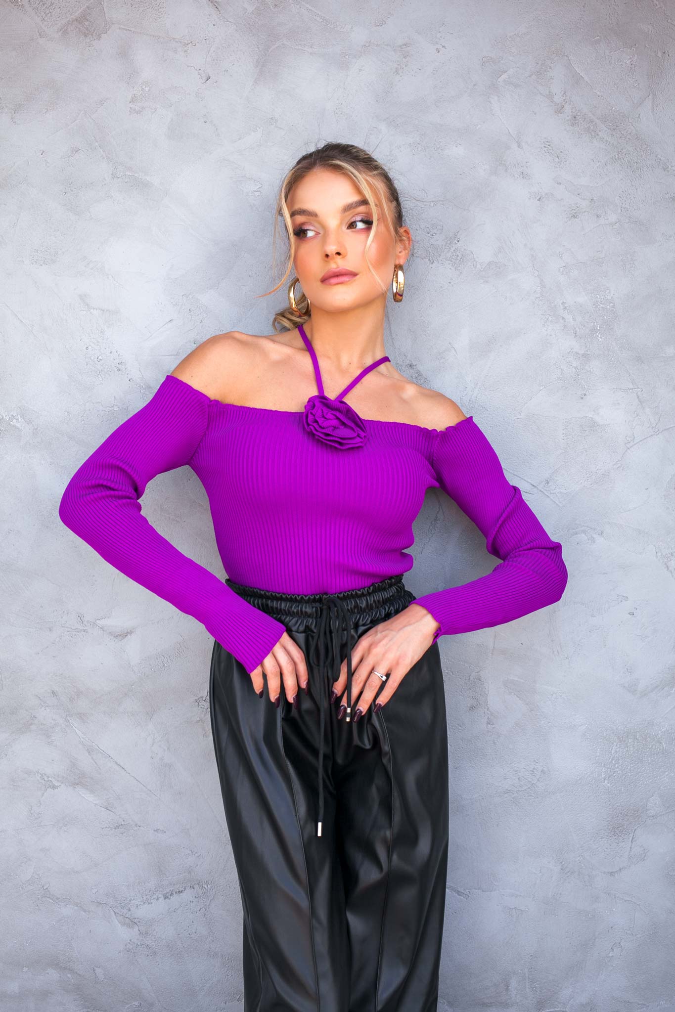 Miradaτοπ ριπ με απλικέ λουλούδι μωβ