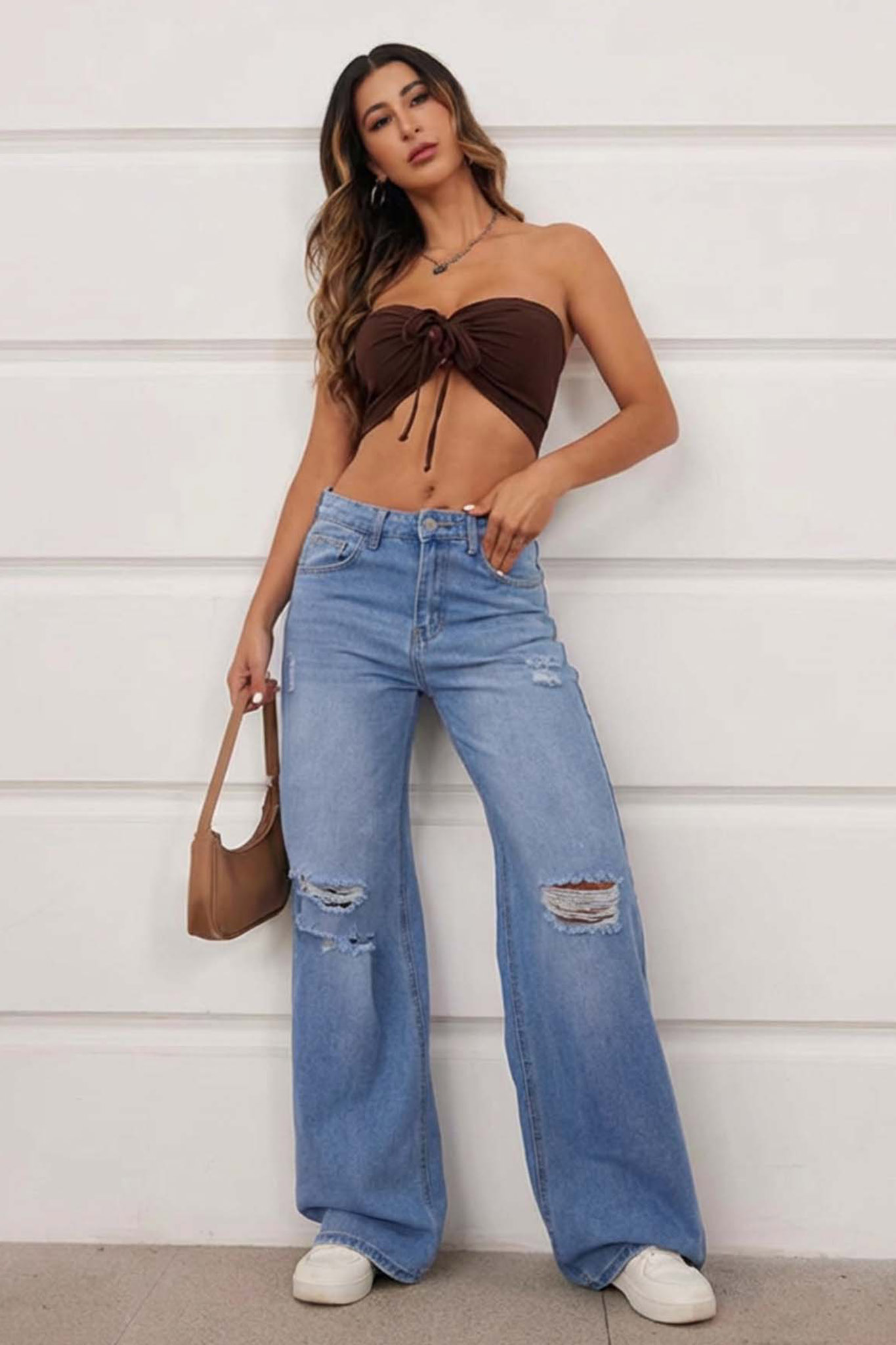 Τζιν παντελόνι που ξεχωρίζει για την άνετη γραμμή του και τα μοντέρνα σκισίματα, προσφέροντας ένα ανεπιτήδευτα cool και σύγχρονο στυλ. Η ψηλή του μέση κολακεύει τη σιλουέτα, καθιστώντας το την ιδανική βάση για κάθε καθημερινή εμφάνιση που αναζητά μια δόση αυθεντικού streetwear χαρακτήρα.