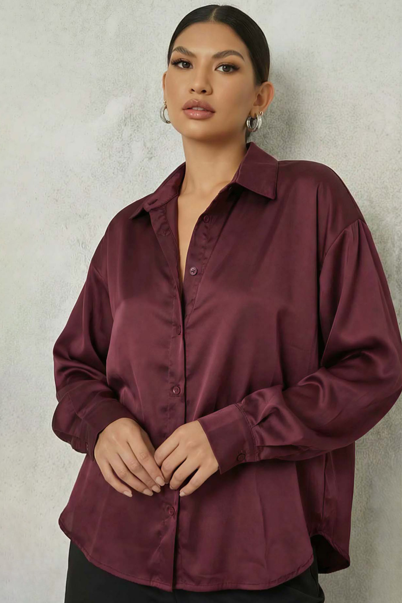Miranda πουκάμισο με όψη σατέν μπορντό