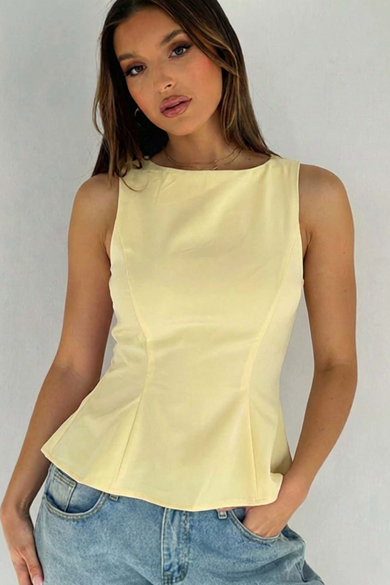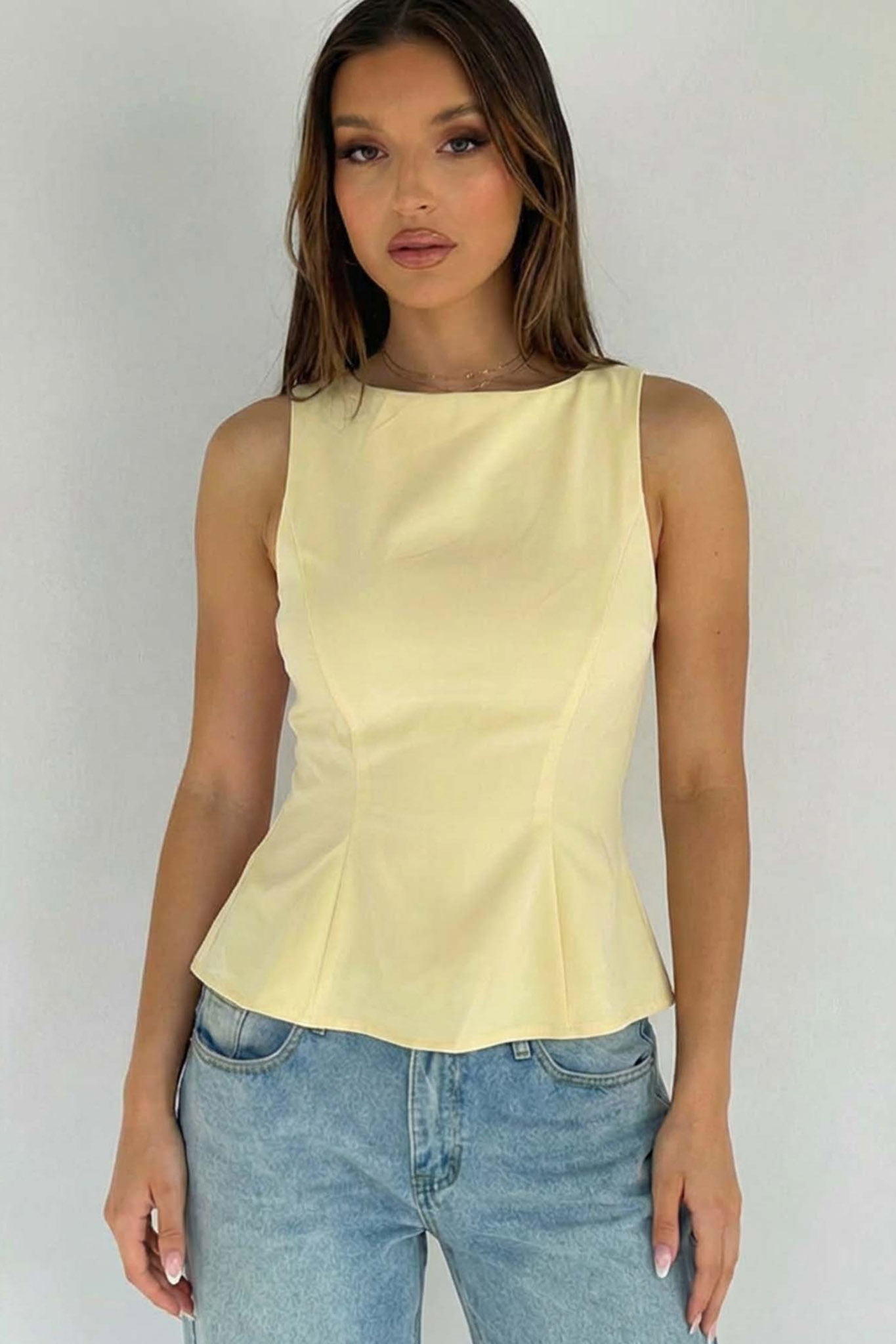 Αμάνικο τοπ είναι η ιδανική επιλογή για σικάτες εμφανίσεις. Διαθέτει κλειστή λαιμόκοψη και θηλυκή γραμμή peplum που ανοίγει απαλά στη μέση, κολακεύοντας τη σιλουέτα. Είναι φτιαγμένο από σταθερό ύφασμα που διατηρεί τη φόρμα του και συνδυάζεται τέλεια τόσο με το αγαπημένο σας τζιν για ένα προσεγμένο καθημερινό look, όσο και με υφασμάτινο παντελόνι για μια επίσημη έξοδο.