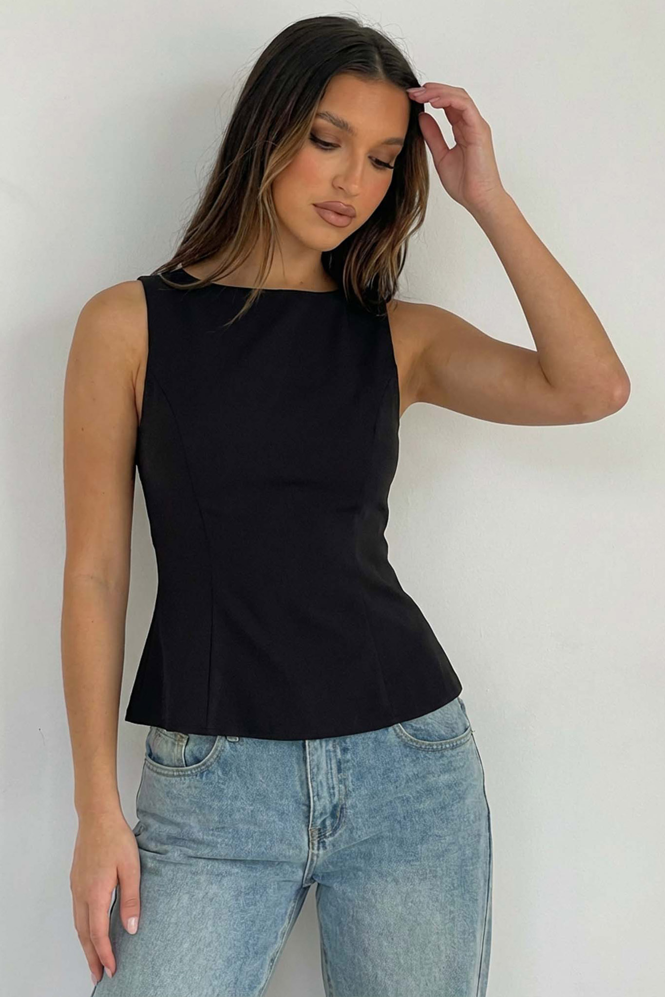 Αμάνικο τοπ είναι η ιδανική επιλογή για σικάτες εμφανίσεις. Διαθέτει κλειστή λαιμόκοψη και θηλυκή γραμμή peplum που ανοίγει απαλά στη μέση, κολακεύοντας τη σιλουέτα. Είναι φτιαγμένο από σταθερό ύφασμα που διατηρεί τη φόρμα του και συνδυάζεται τέλεια τόσο με το αγαπημένο σας τζιν για ένα προσεγμένο καθημερινό look, όσο και με υφασμάτινο παντελόνι για μια επίσημη έξοδο.