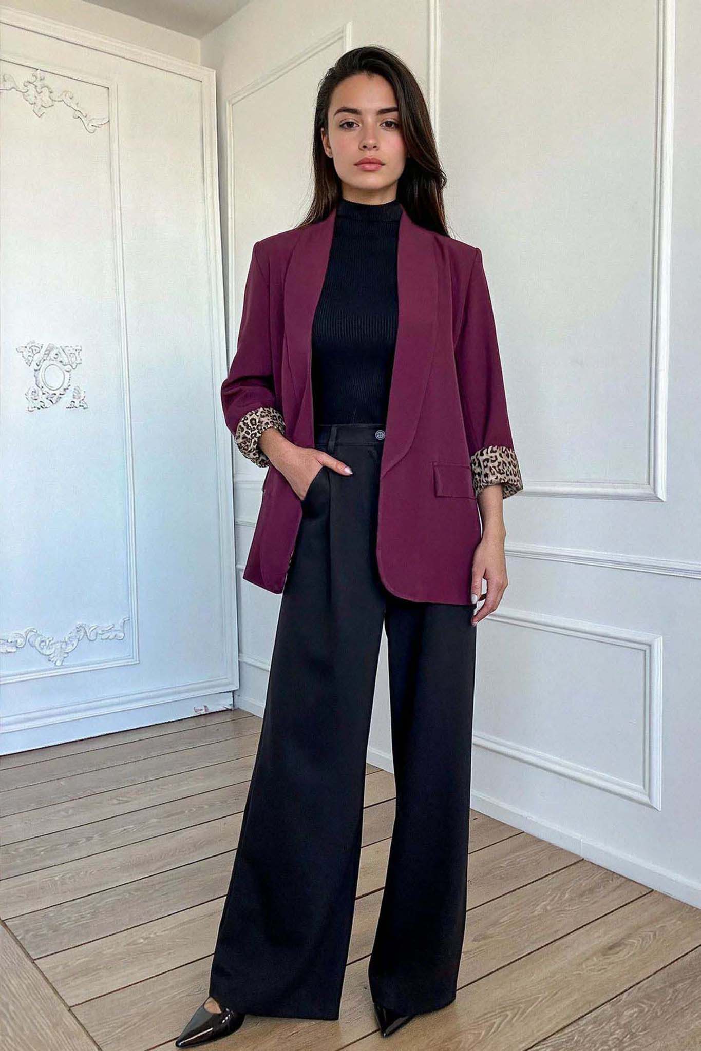Σακάκι με λεοπάρ φόδρα. Μήκος 73cm, Στήθος 57cm, Μανίκι 44cm