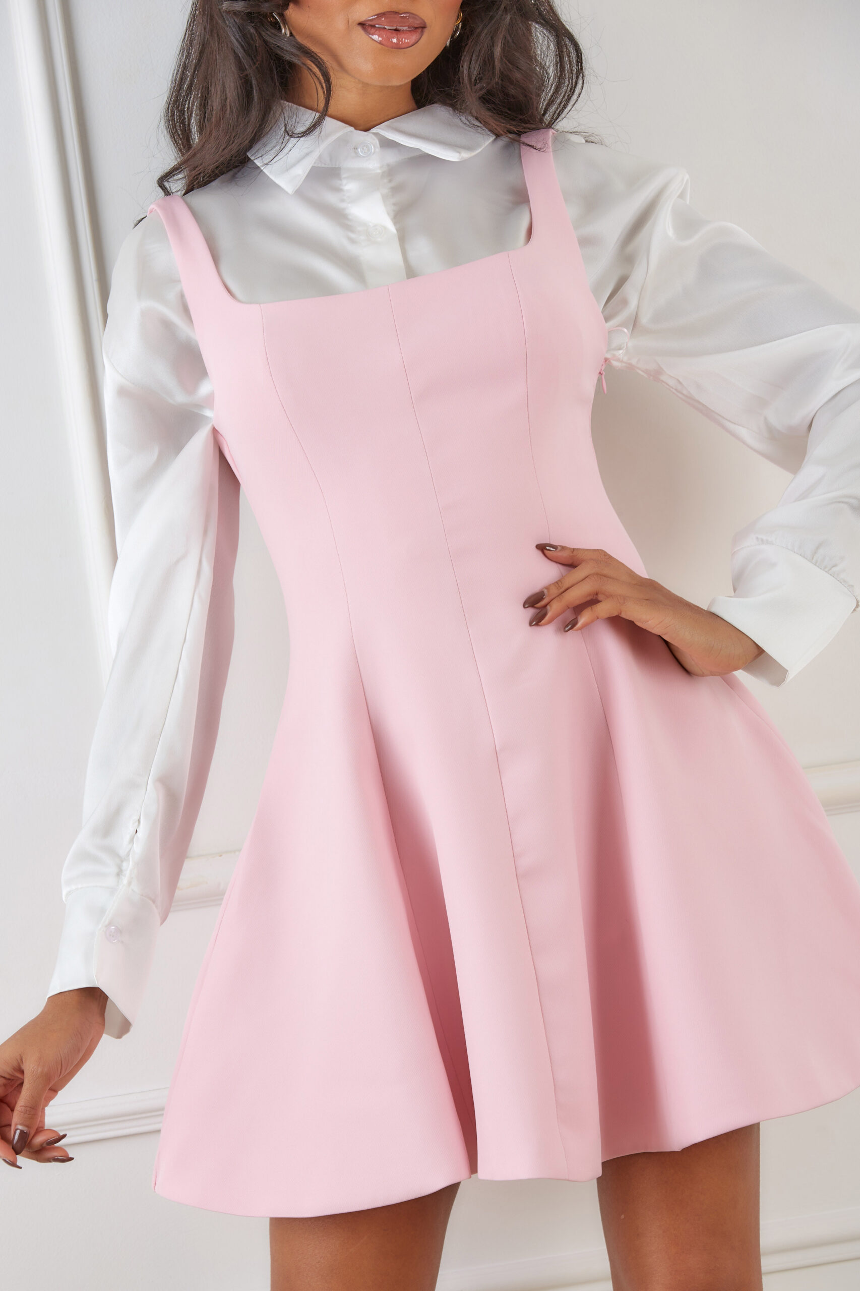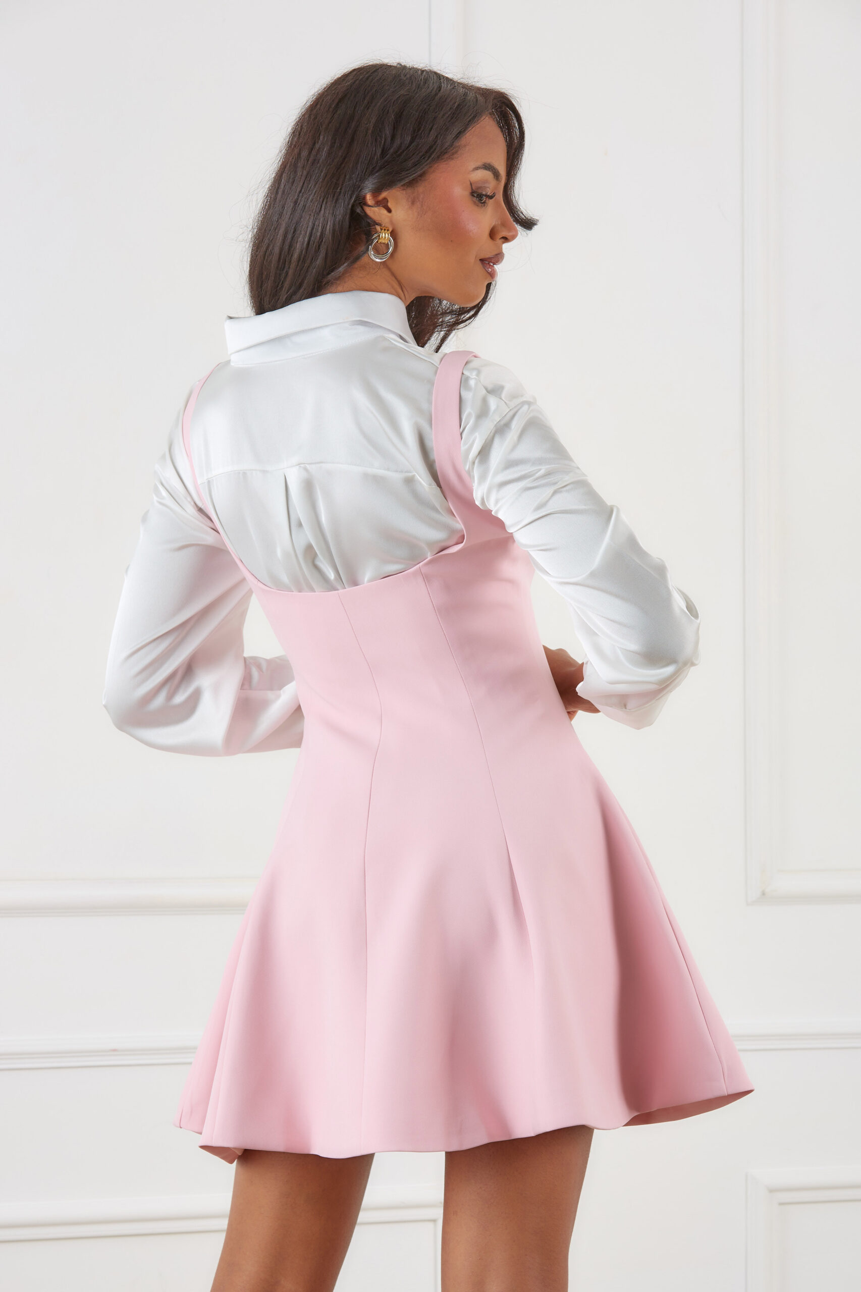 Mini φόρεμα, που εκπέμπει απαράμιλλη κομψότητα και θηλυκότητα,διαθέτει εφαρμοστό μπούστο με τετράγωνη λαιμόκοψη και φαρδιές τιράντες που κολακεύουν τους ώμους, ενώ η φούστα ανοίγει σε γραμμή Α, προσφέροντας μια ανάλαφρη και παιχνιδιάρικη κίνηση.