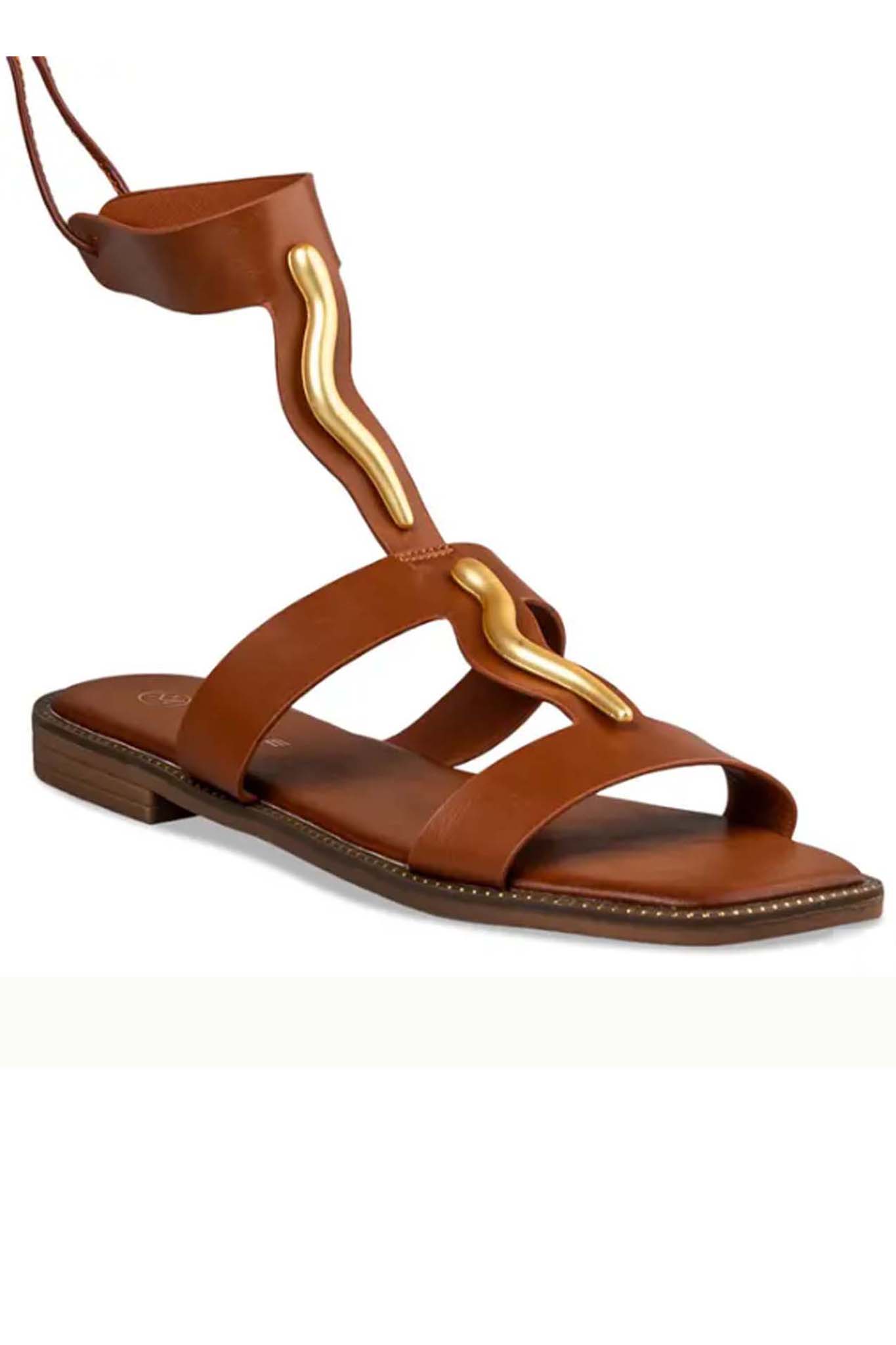 Σανδάλια φλατ από συνθετικό δέρμα. Ύψος Τακουνιού: 1cm