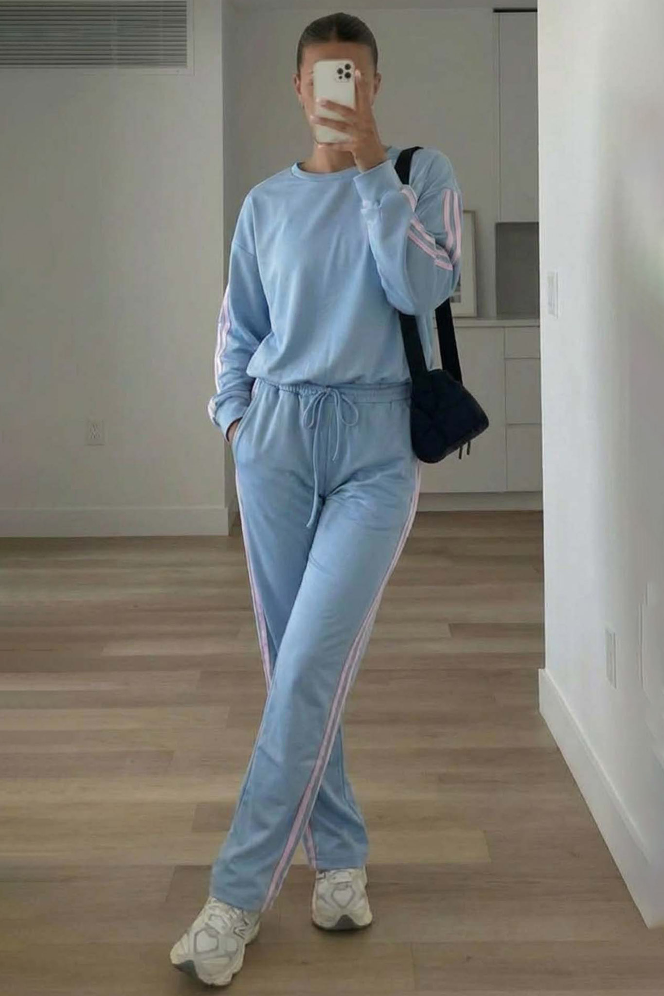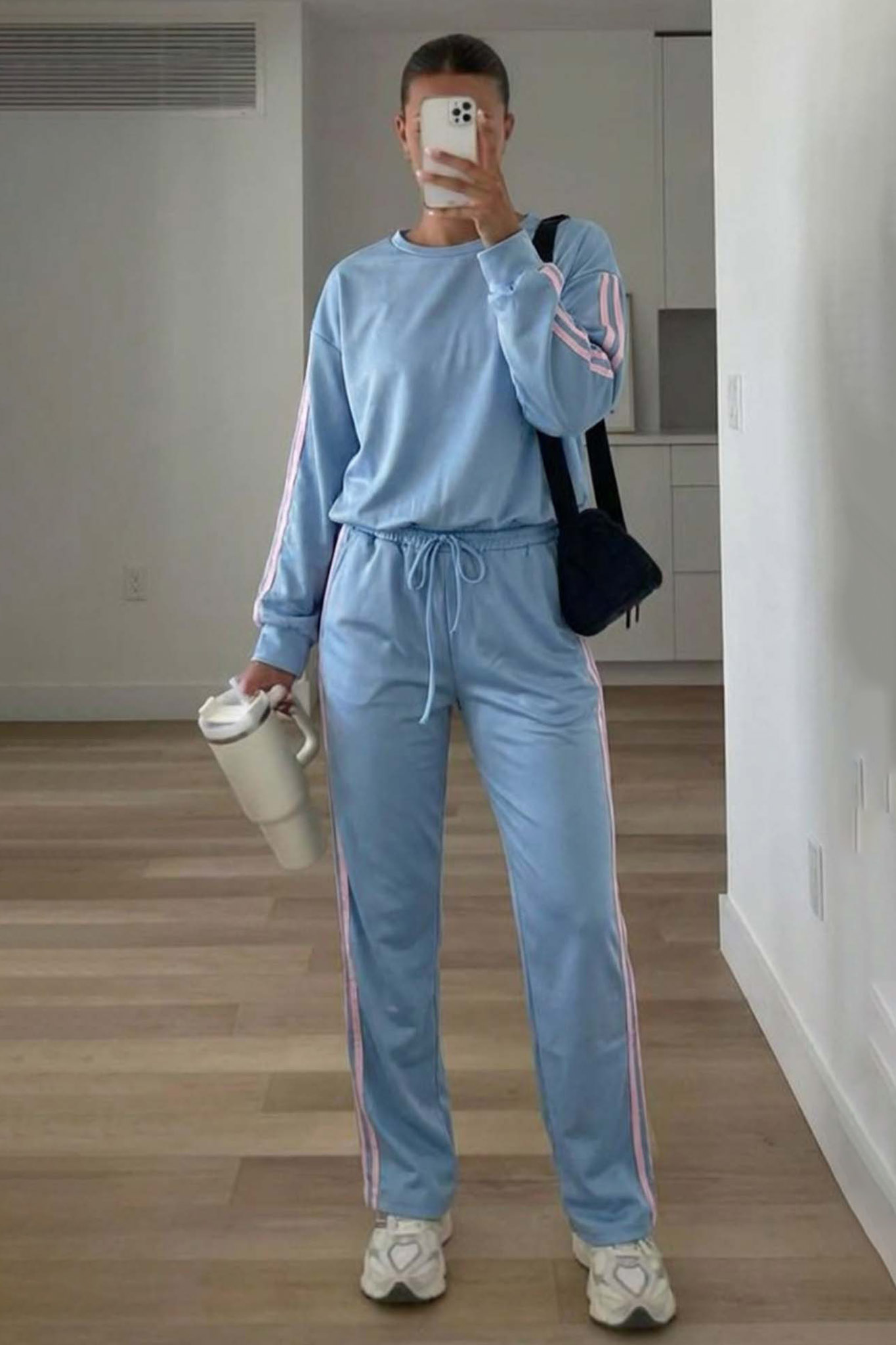 Σετ φόρμας η οποία προσφέρει την απόλυτη άνεση για κάθε μέρα. Περιλαμβάνει μπλούζα με στρογγυλή λαιμόκοψη και παντελόνι με ρυθμιζόμενο κορδόνι στη μέση για άψογη εφαρμογή και ρίγες στο πλάι.