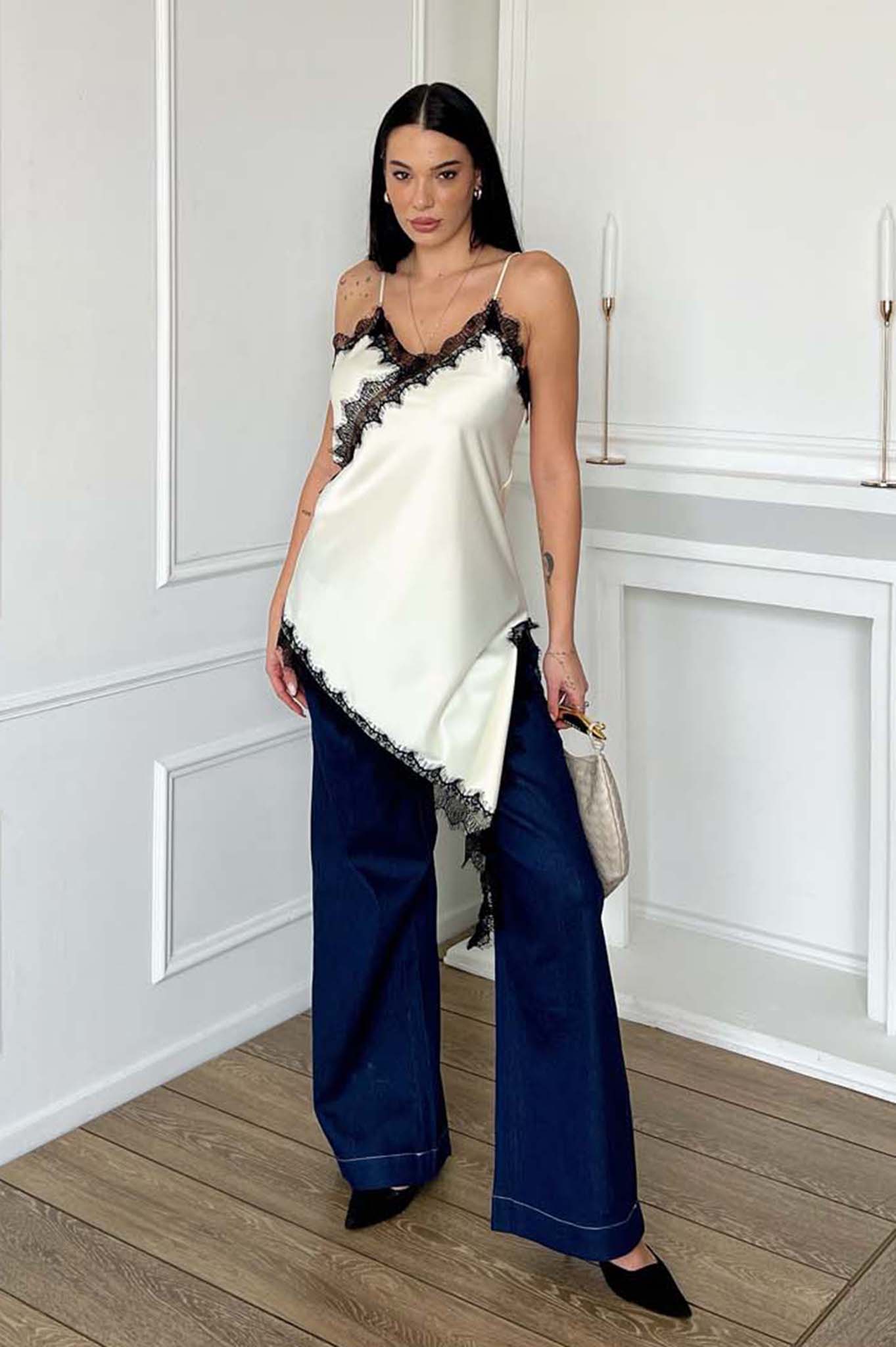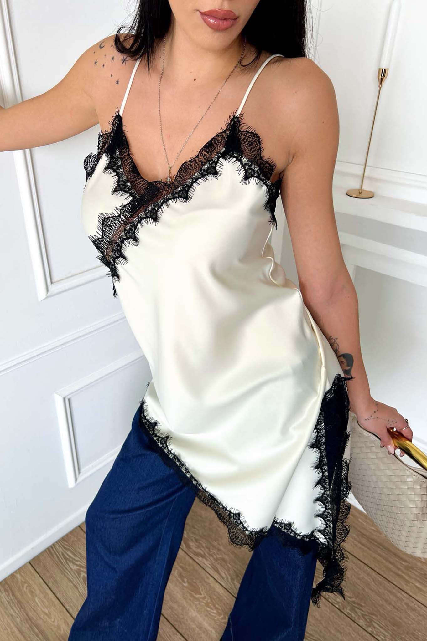 Μπλούζα με δαντέλα. Ιδανικό τόσο για βραδινές εμφανίσεις όσο και για πιο ιδιαίτερες περιστάσεις το πρωί. Μήκος 76-120cm, στήθος 45cm