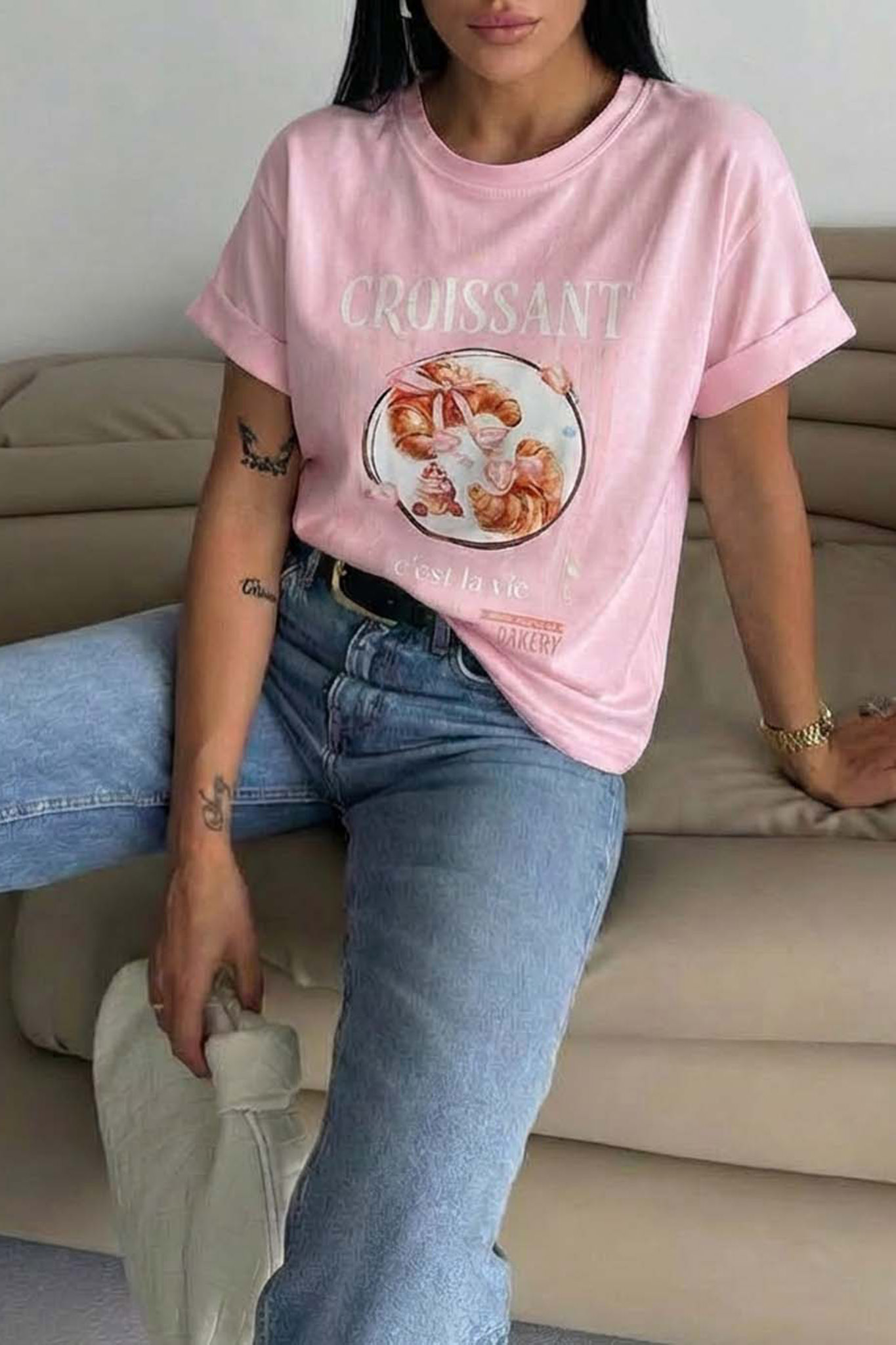 ’νετη, ελαφρώς oversized εφαρμογή με κλασική στρογγυλή λαιμόκοψη, ιδανική για κάθε σωματότυπο. Mήκος 60cm, στήθος 110cm