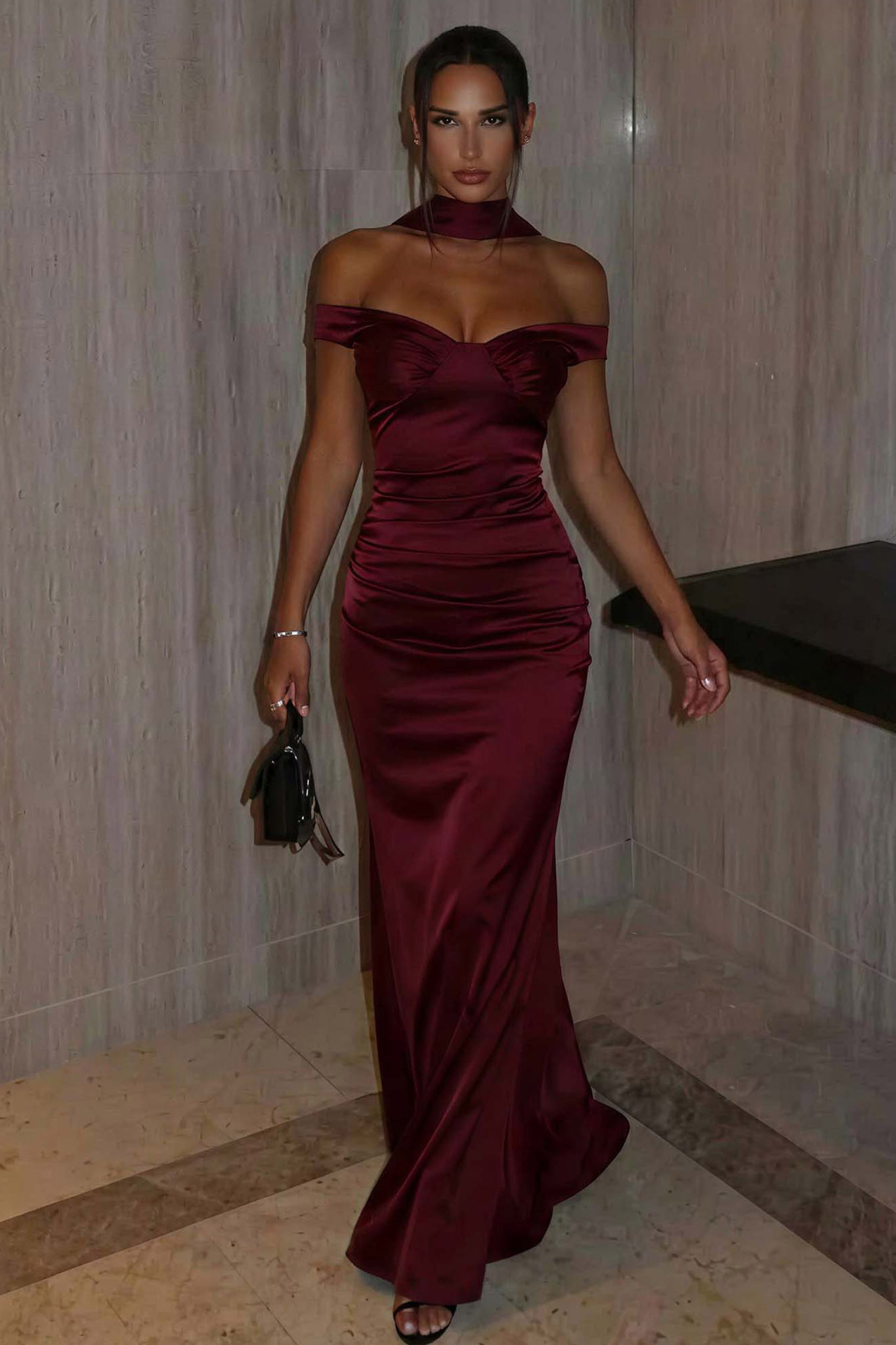 Moonlightμαξί σατέν φόρεμα μπορντό