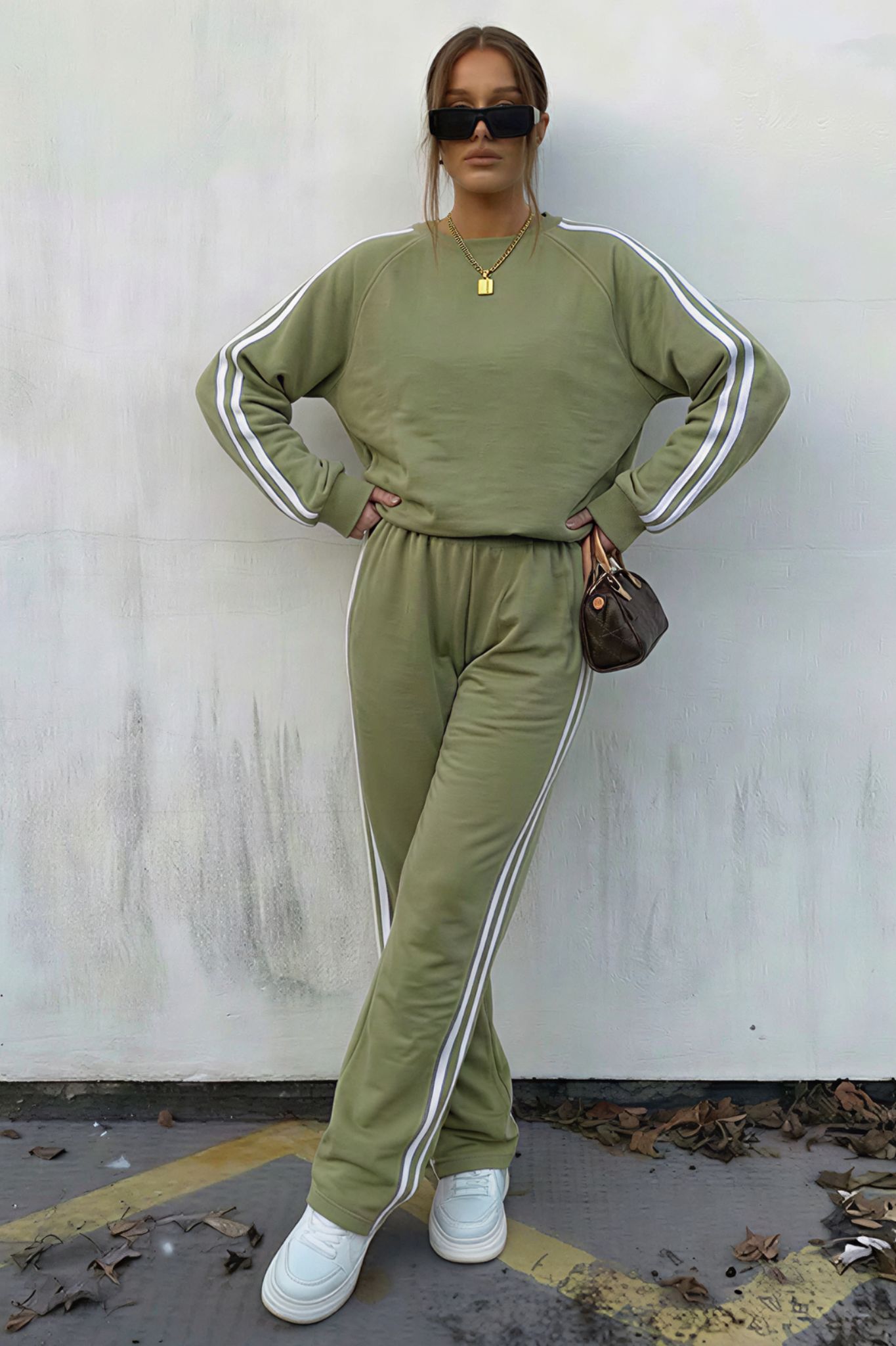 Muskσετ φούτερ φόρμα χακί