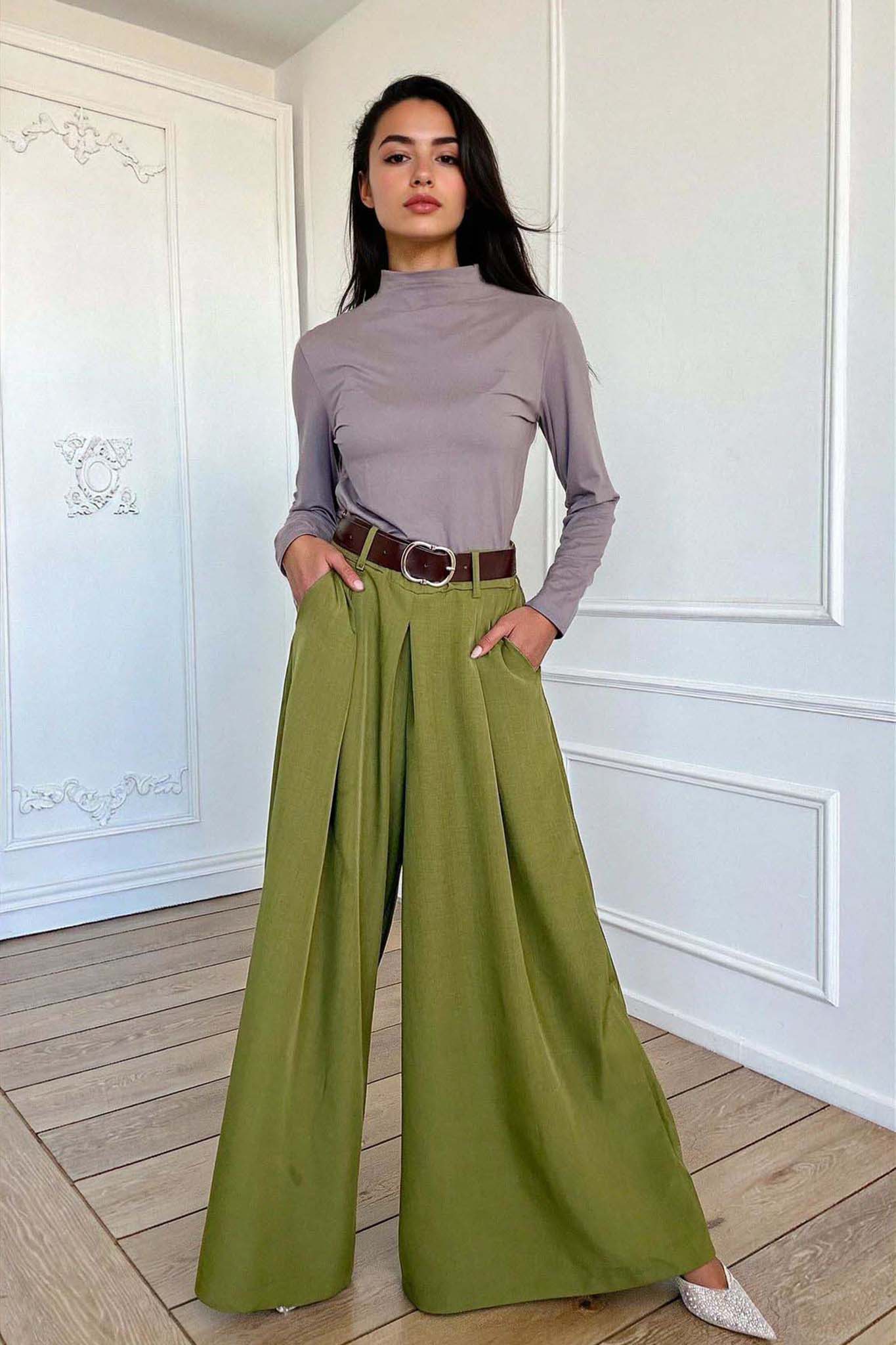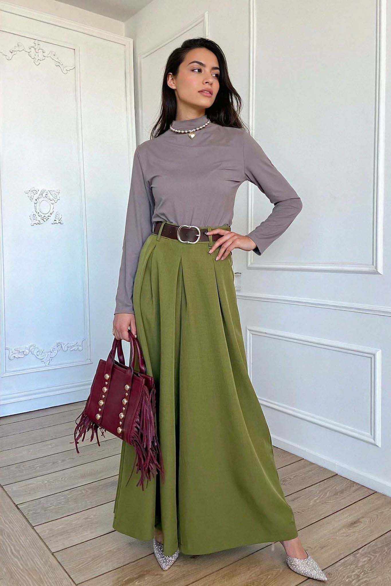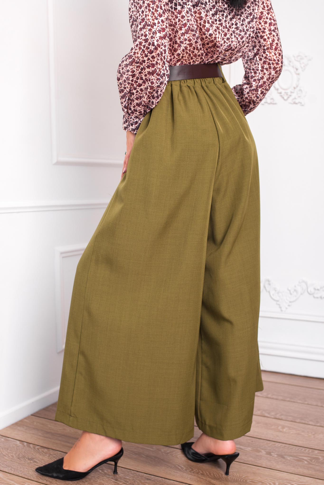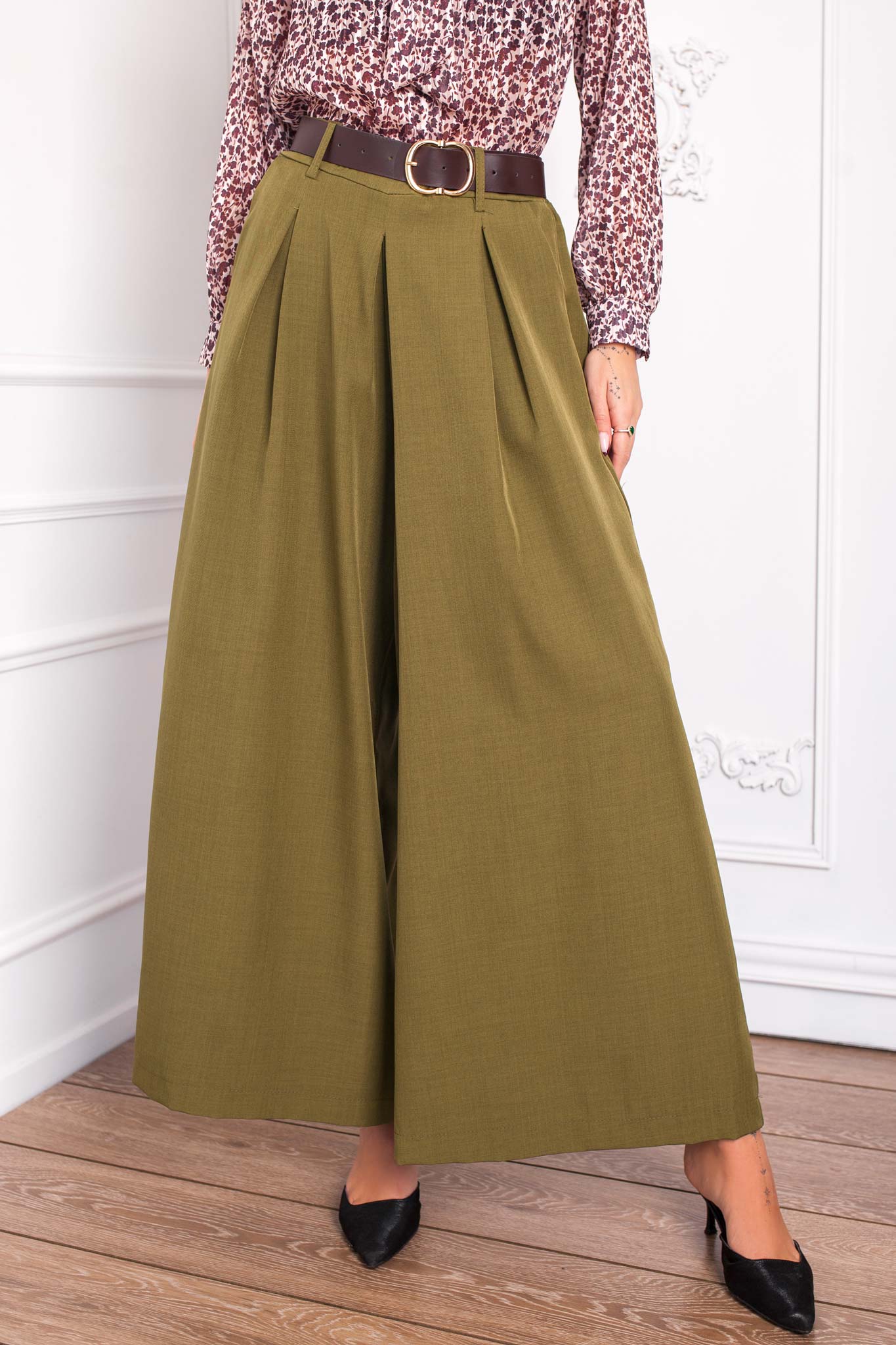 Nanaυφασμάτινο παντελόνι με πιέτες λαδί