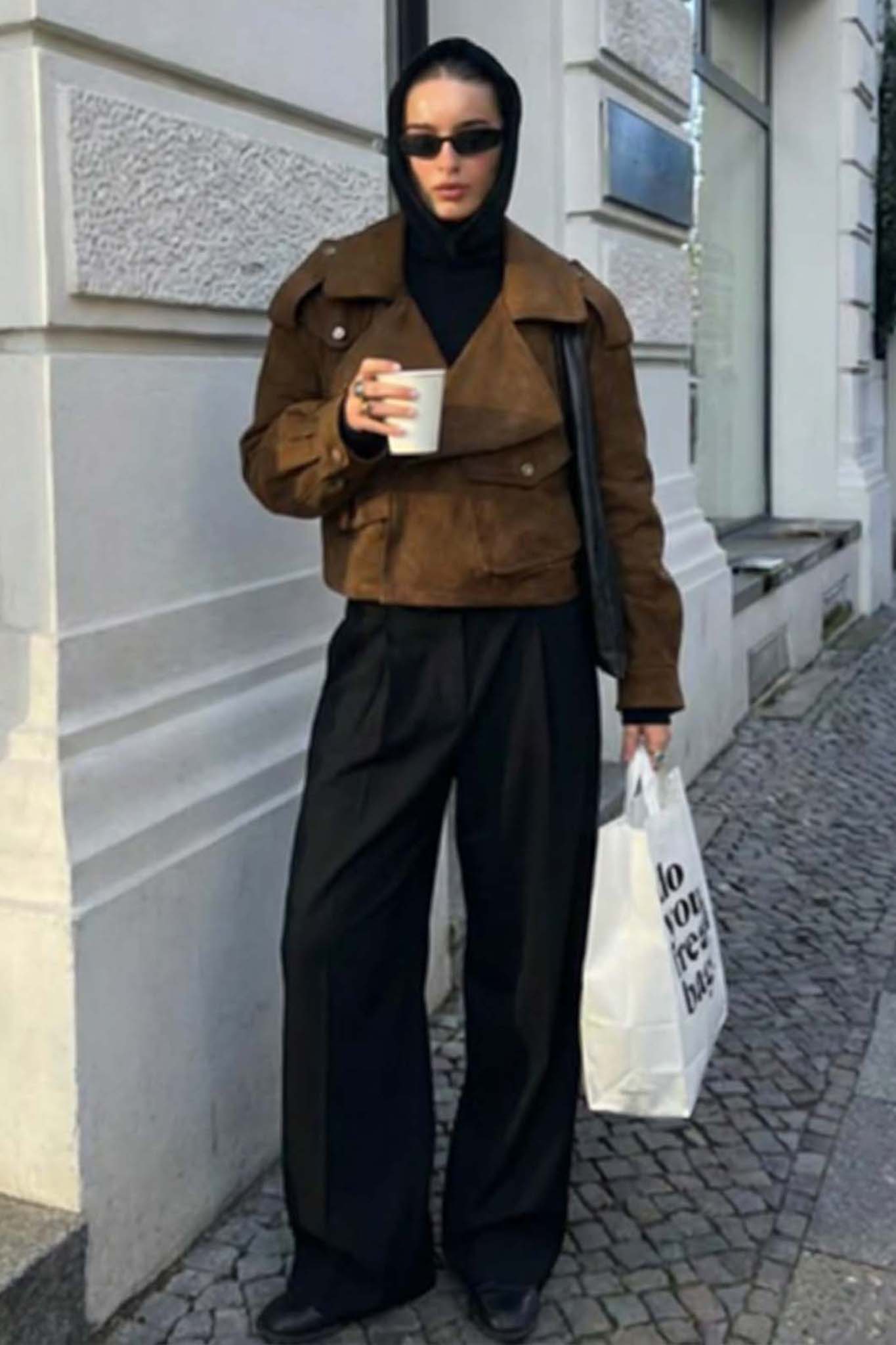 Κοντό σουέτ τζάκετ με τσέπες, διακοσμητικά κουμπιά και πέτο. Ιδανικό για εμφανίσεις από το πρωί μέχρι το βράδυ.