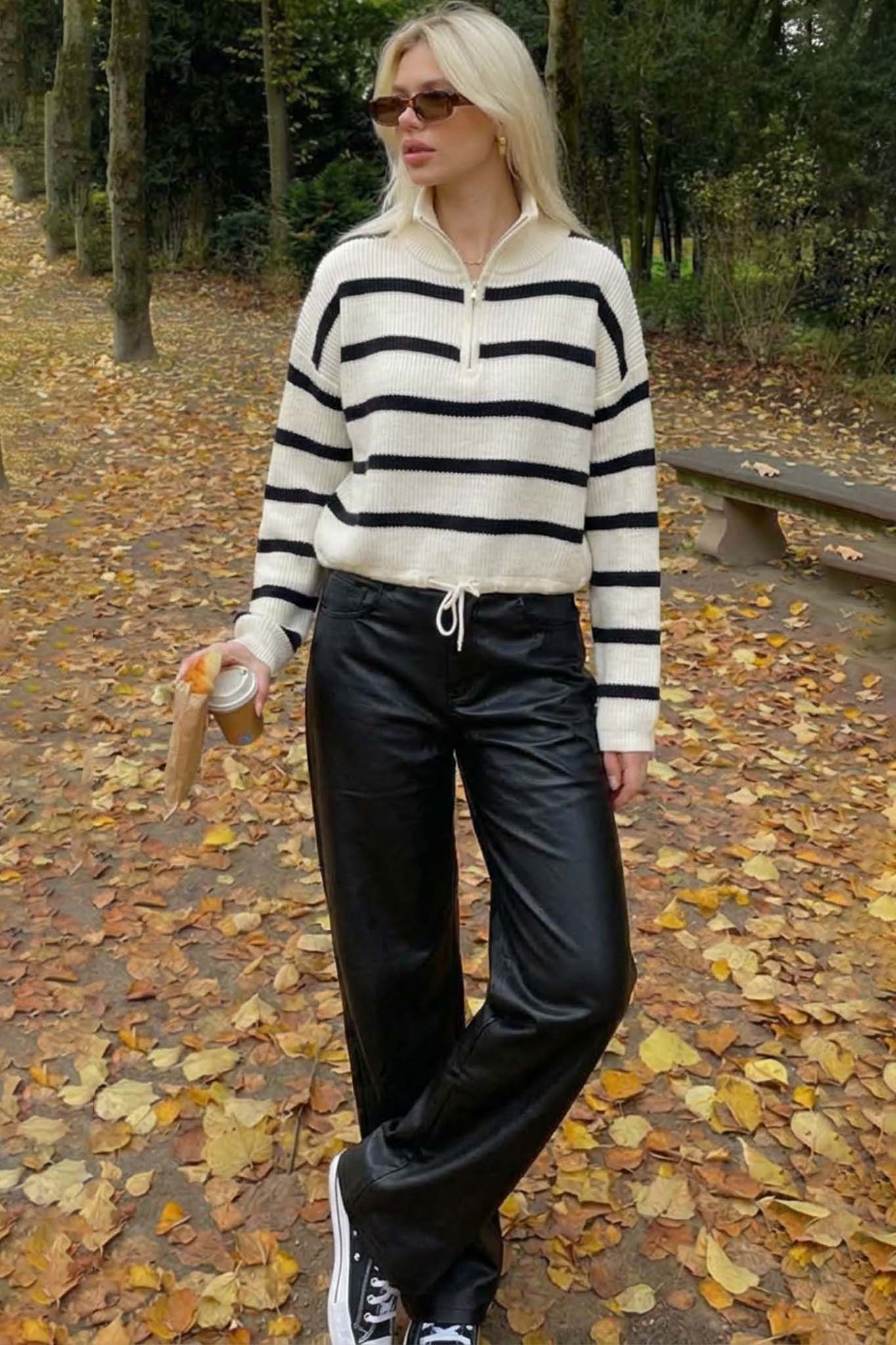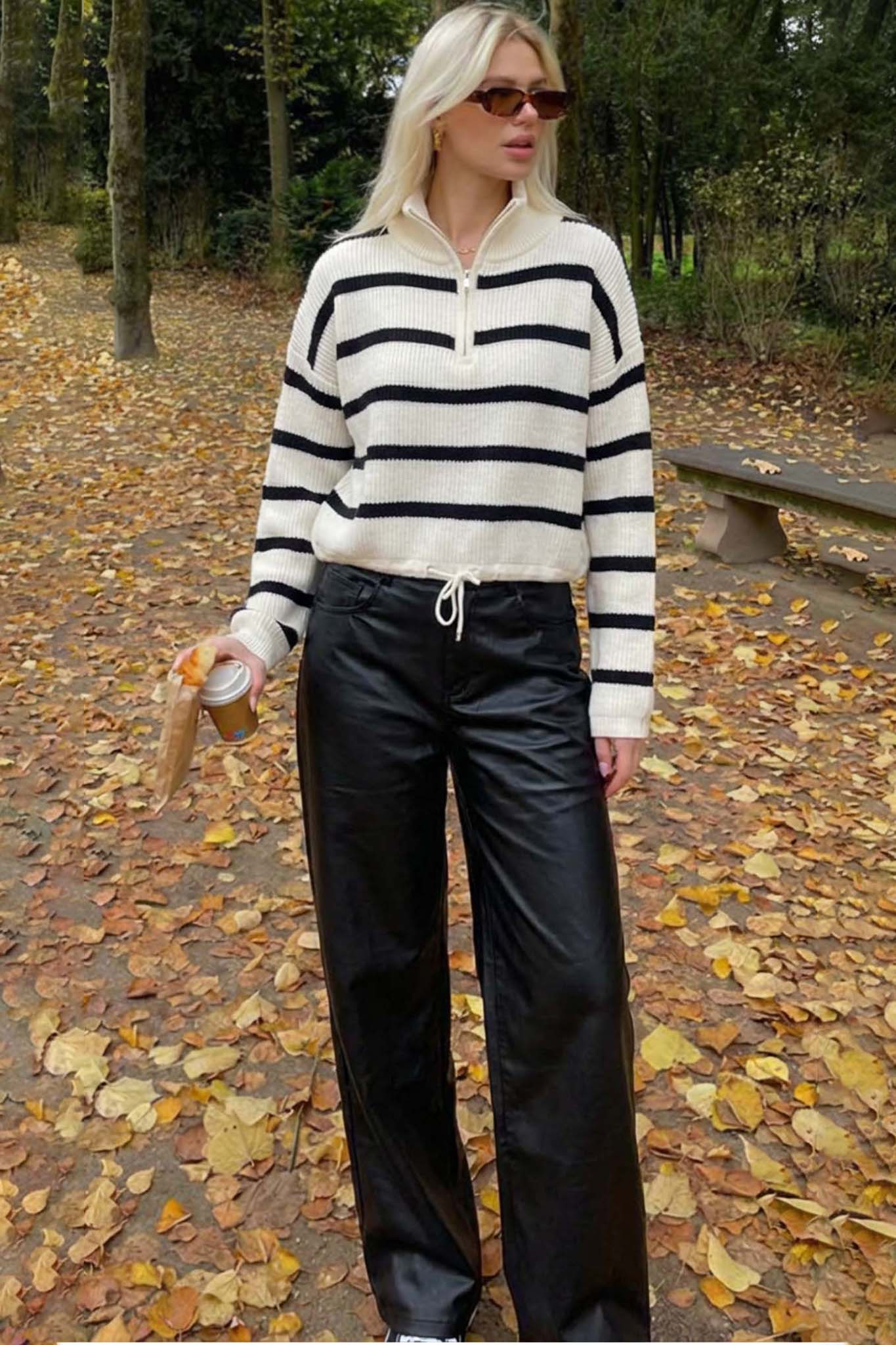 Nilsaσετ μπλούζα ριγέ με παντελόνι δερματίνης μαύρο