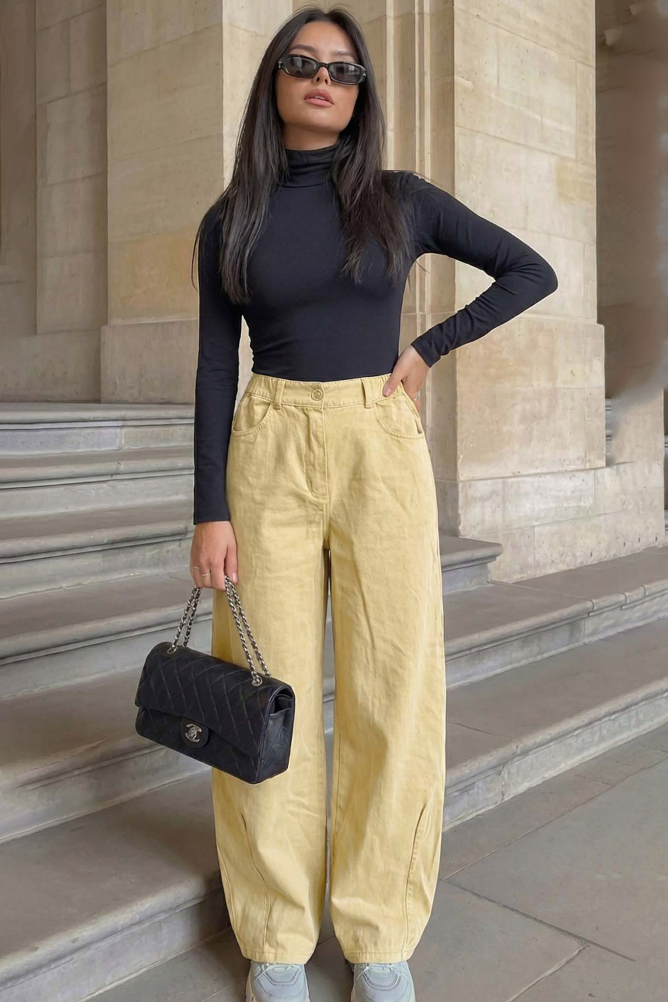 Τζιν παντελόνι φαρδύ με λάστιχο στη μέση.