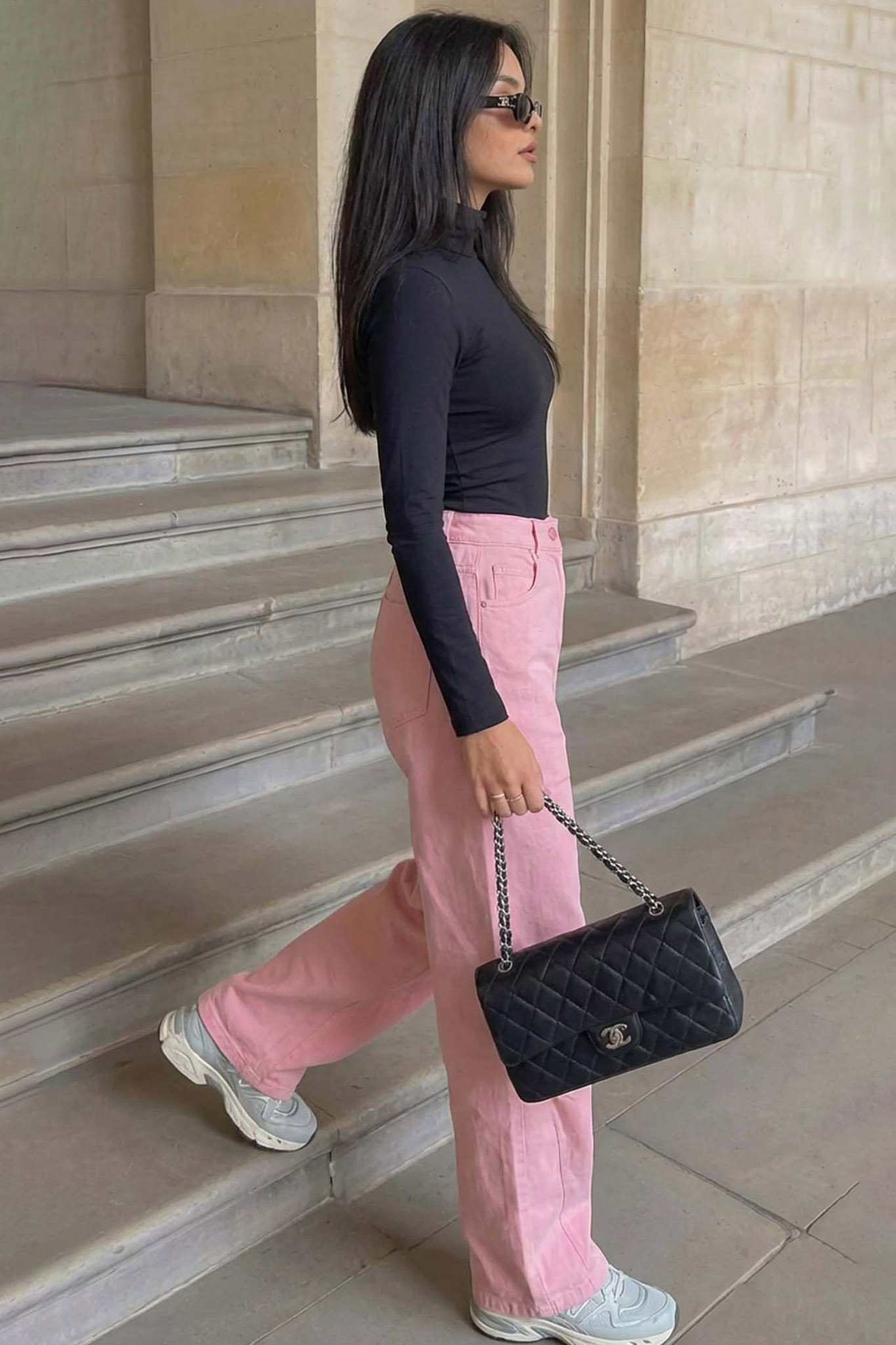 Τζιν παντελόνι φαρδύ με λάστιχο στη μέση.