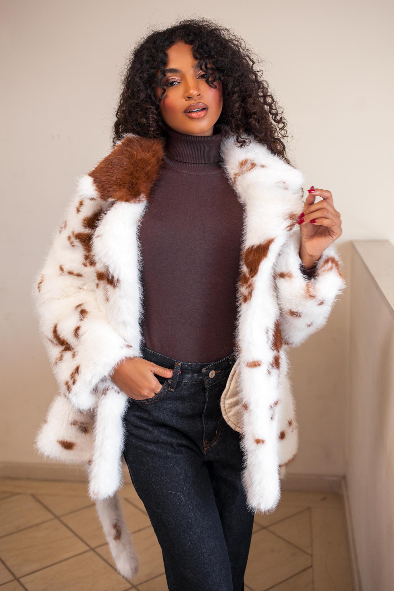 Οικολογική γούνα, πολύ μαλακή αίσθηση. Mήκος 70cm, στήθος 55cm, μανίκι 62cm. 1 λευκο