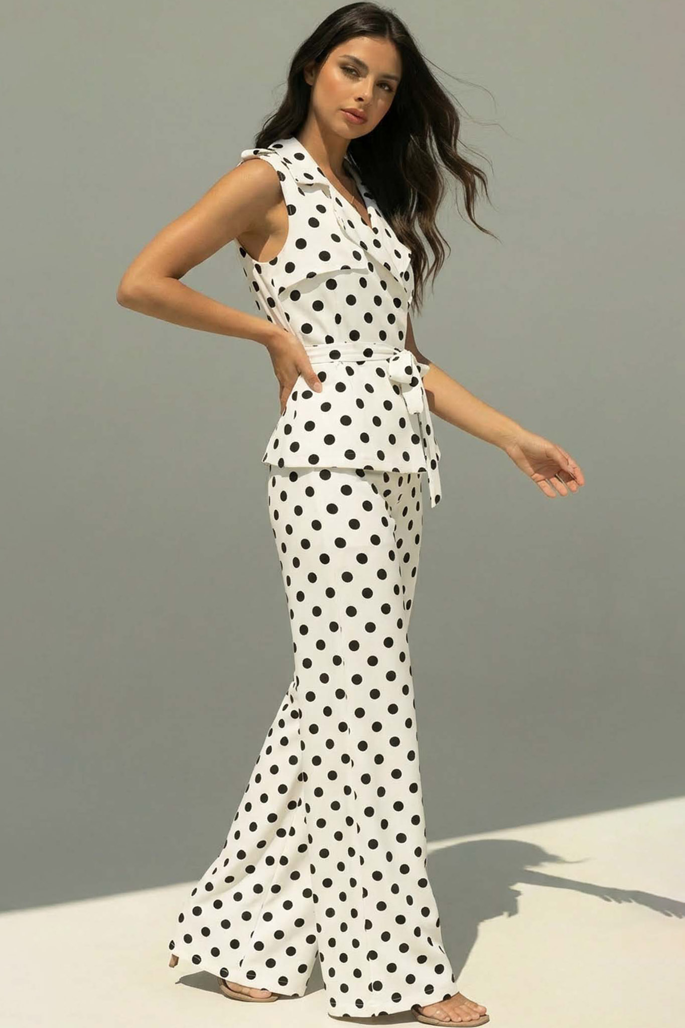 Noiretteσετ γιλέκο παντελόνι πουά λευκό