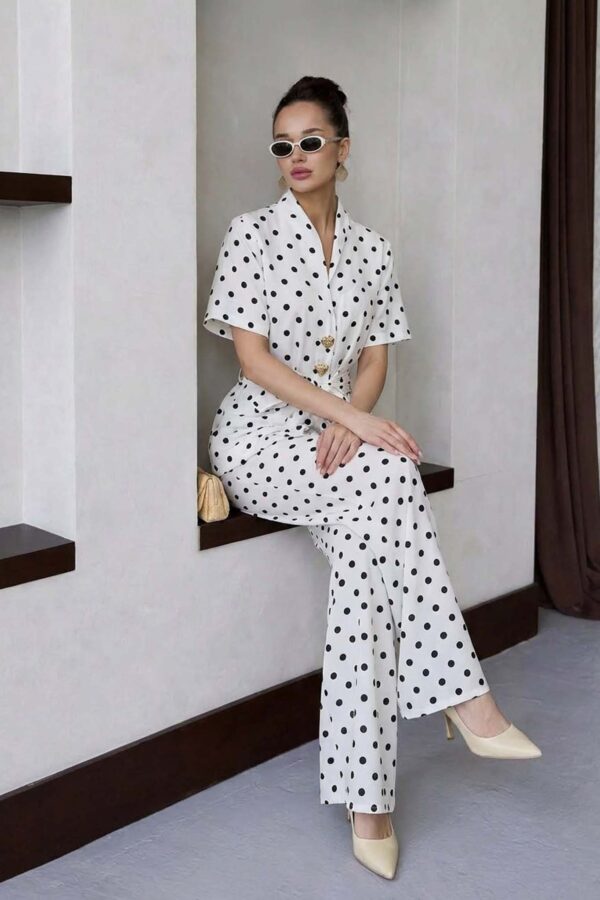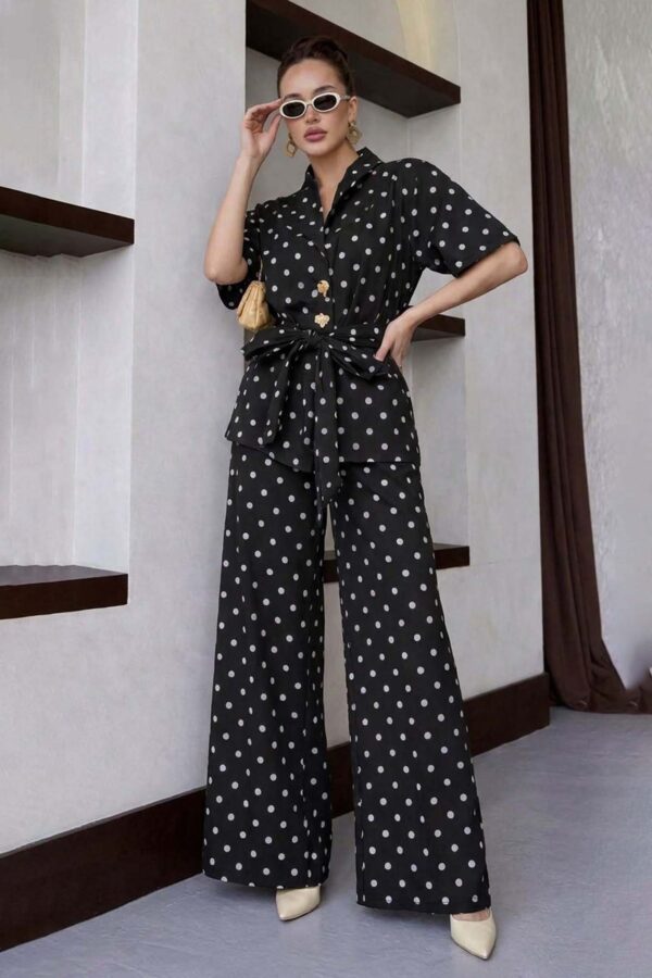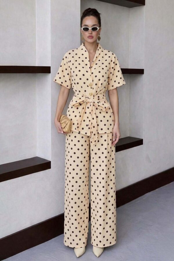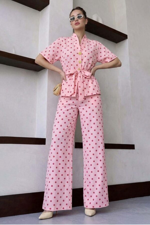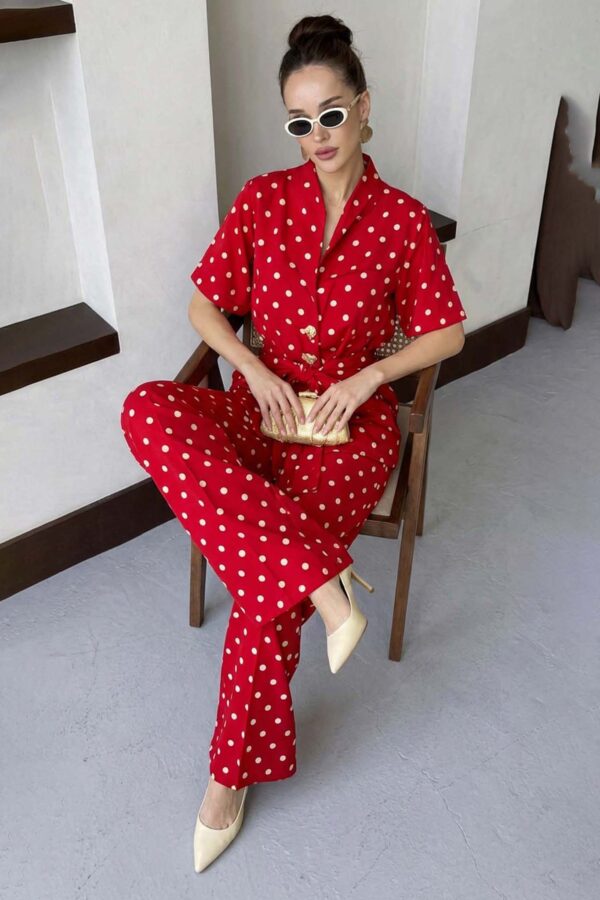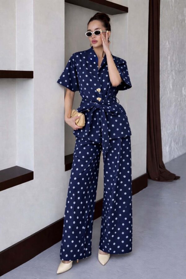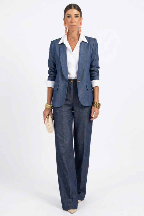 Σετ σακάκι-παντελόνι. Crop σακάκι με πέτο και κουμπάκια. Παντελόνι ψηλόμεσο σε ίσια γραμμή με τσέπες. Κλείνει με φερμουάρ και κουμπί. Σακάκι 43cm μανίκι 62cm στήθος 47cm