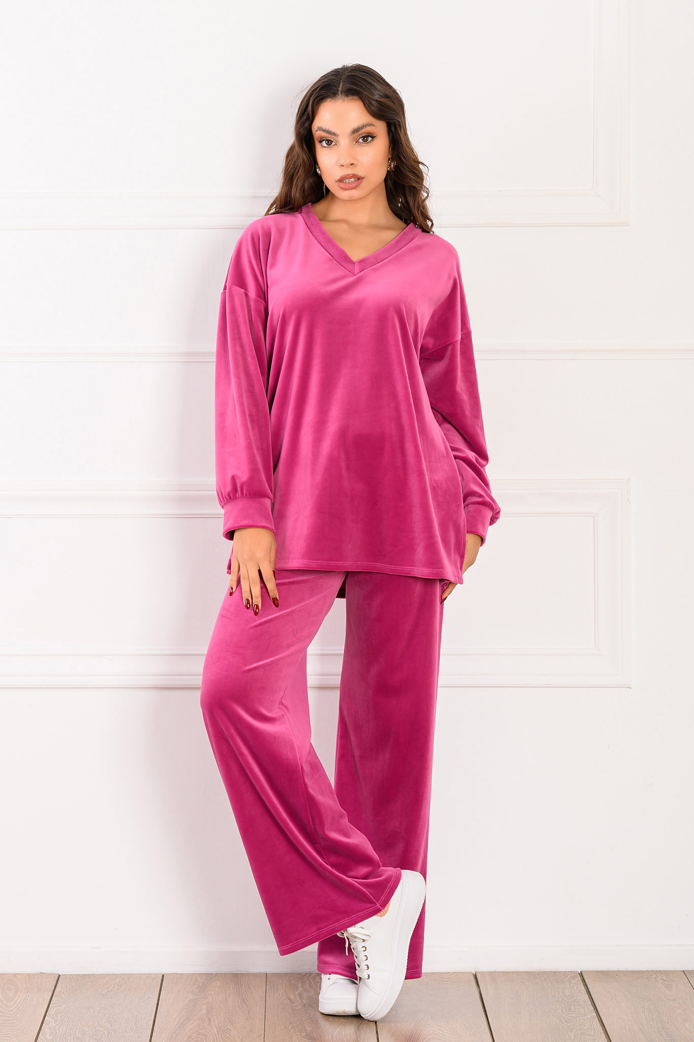 Novelisβελούδινο σετ μπλούζα-παντελόνι φούξια