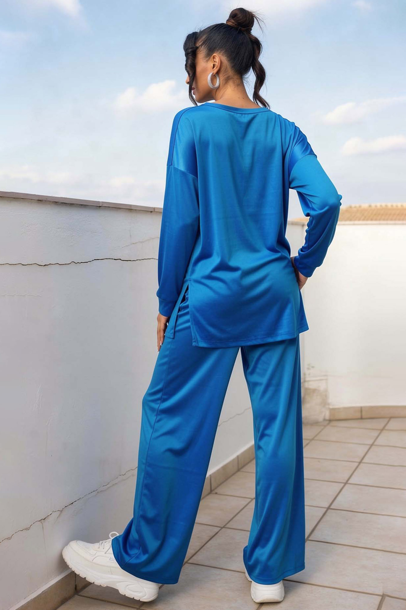 Novelisβελούδινο σετ μπλούζα-παντελόνι μπλε ρουά