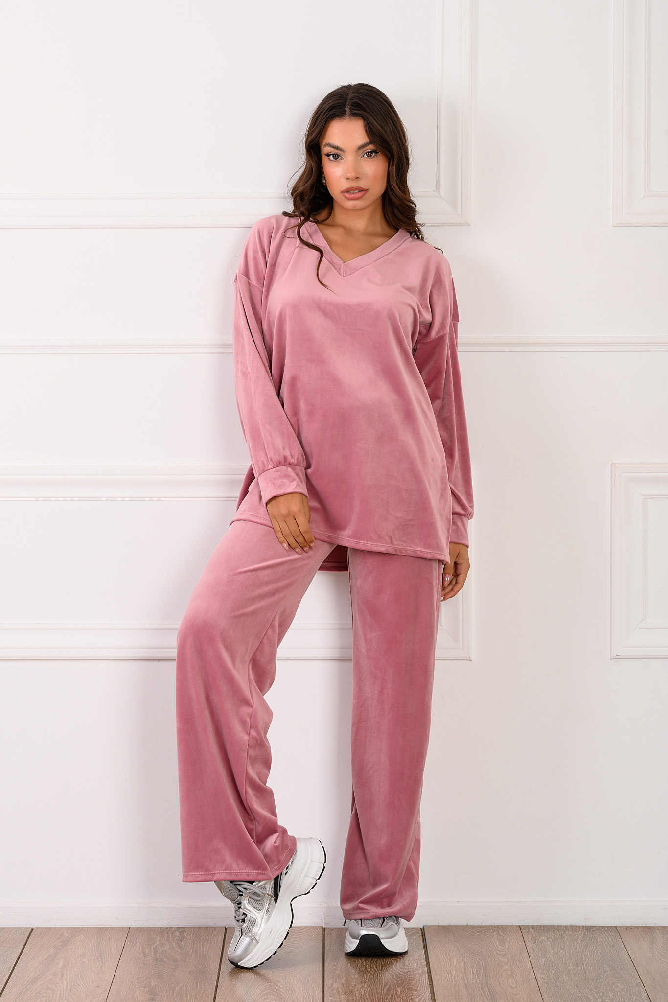 Novelisβελούδινο σετ μπλούζα-παντελόνι ροζ