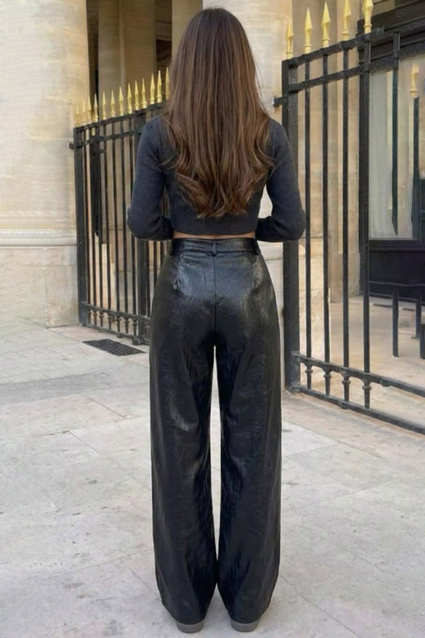 Oliviaπαντελόνι από οικολογικό δέρμα μαύρο