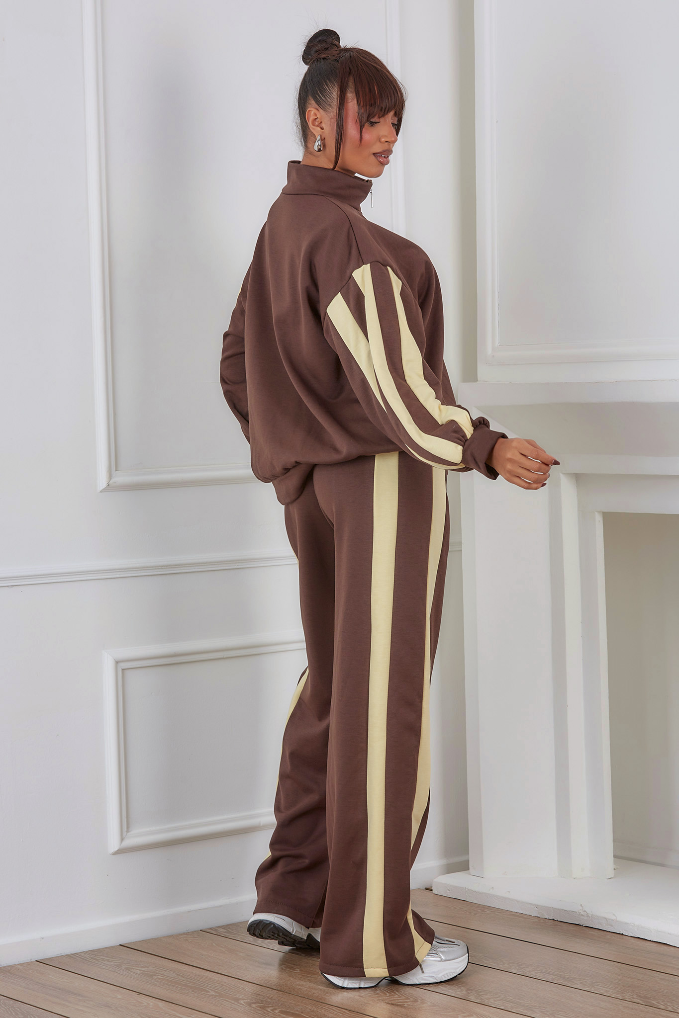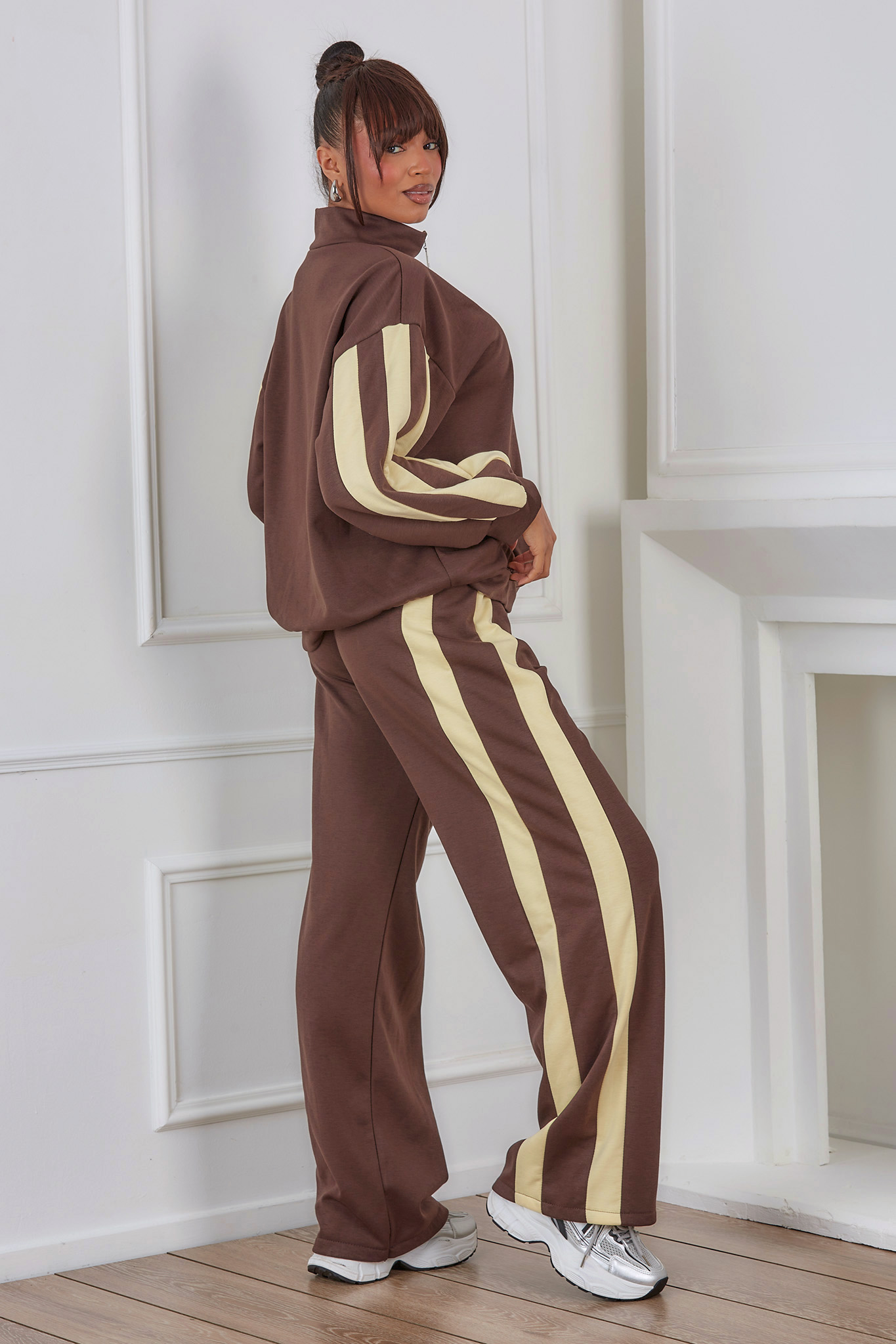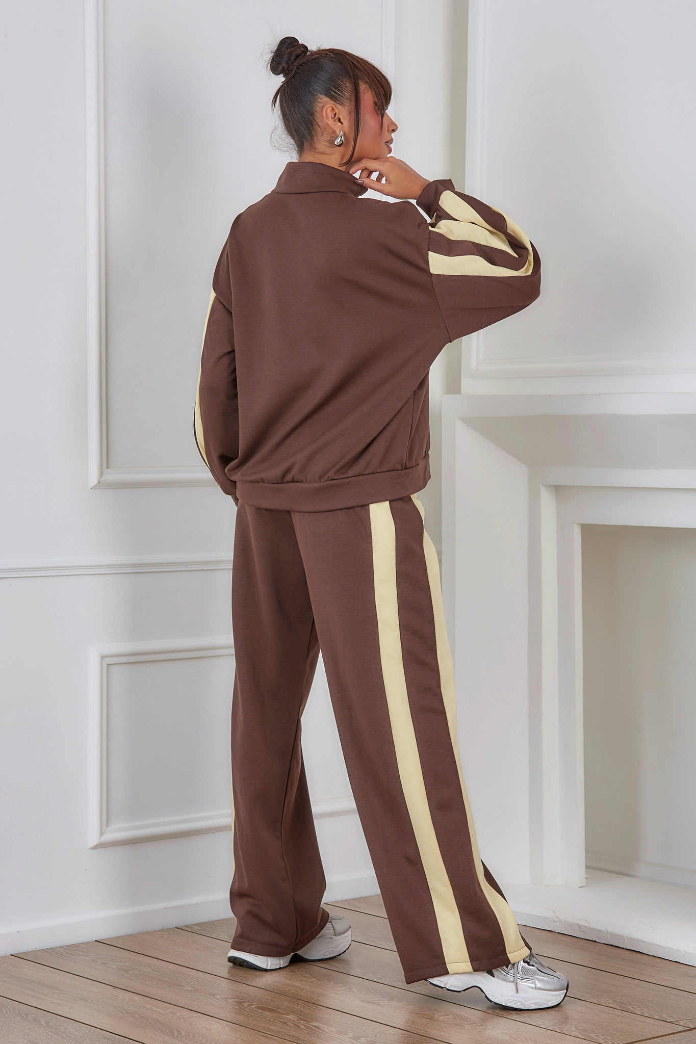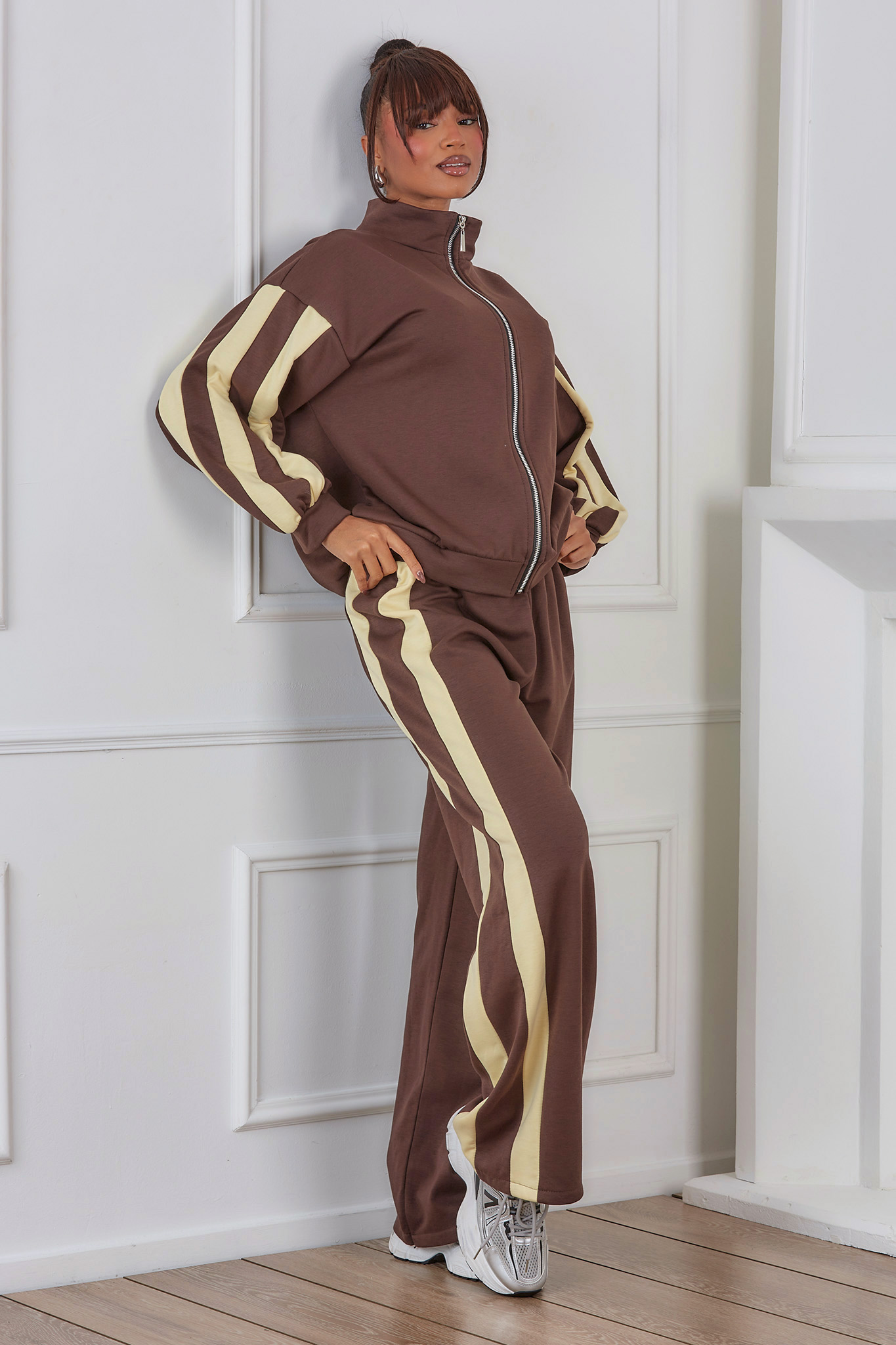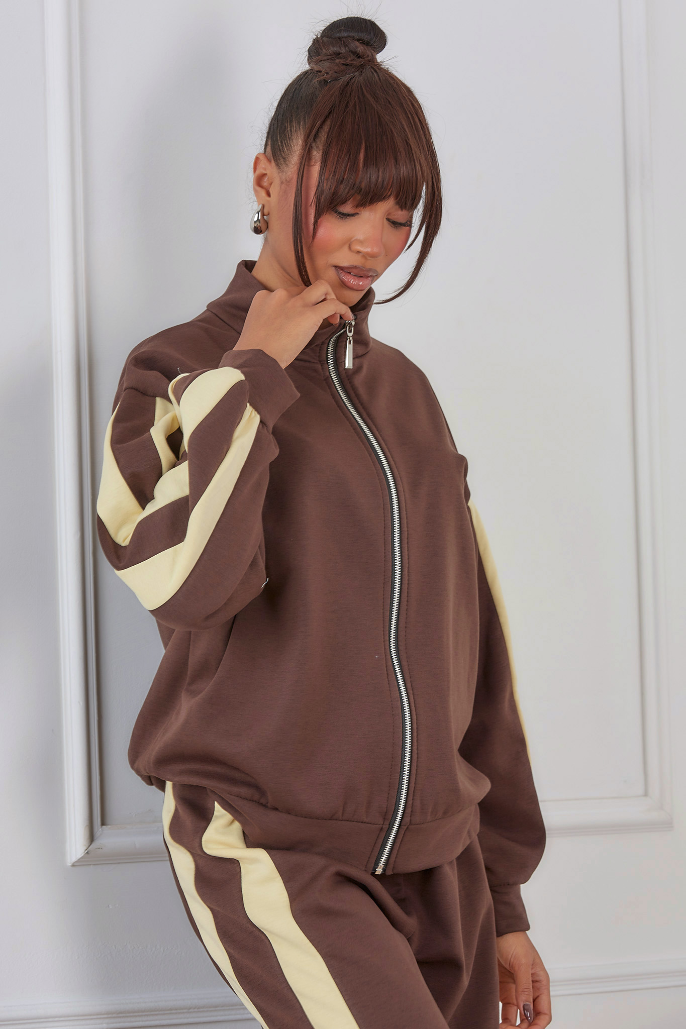 Το σετ περιλαμβάνει ζακέτα με φερμουάρ και παντελόνι, κατασκευασμένα από μαλακό και ελαστικό ύφασμα για μέγιστη άνεση όλη την ημέρα. Διαθέτει μοναδικό συνδυασμό χρωμάτων με βασικό τόνο και διακριτικές ρίγες στα μανίκια και τα πλαϊνά του παντελονιού, προσδίδοντας μια αθλητική αλλά και κομψή εμφάνιση. Ιδανική για καθημερινές δραστηριότητες, βόλτες ή χαλαρές στιγμές στο σπίτι. Διατίθεται σε διάφορες αποχρώσεις για να επιλέξετε αυτή που ταιριάζει στο προσωπικό σας στυλ.