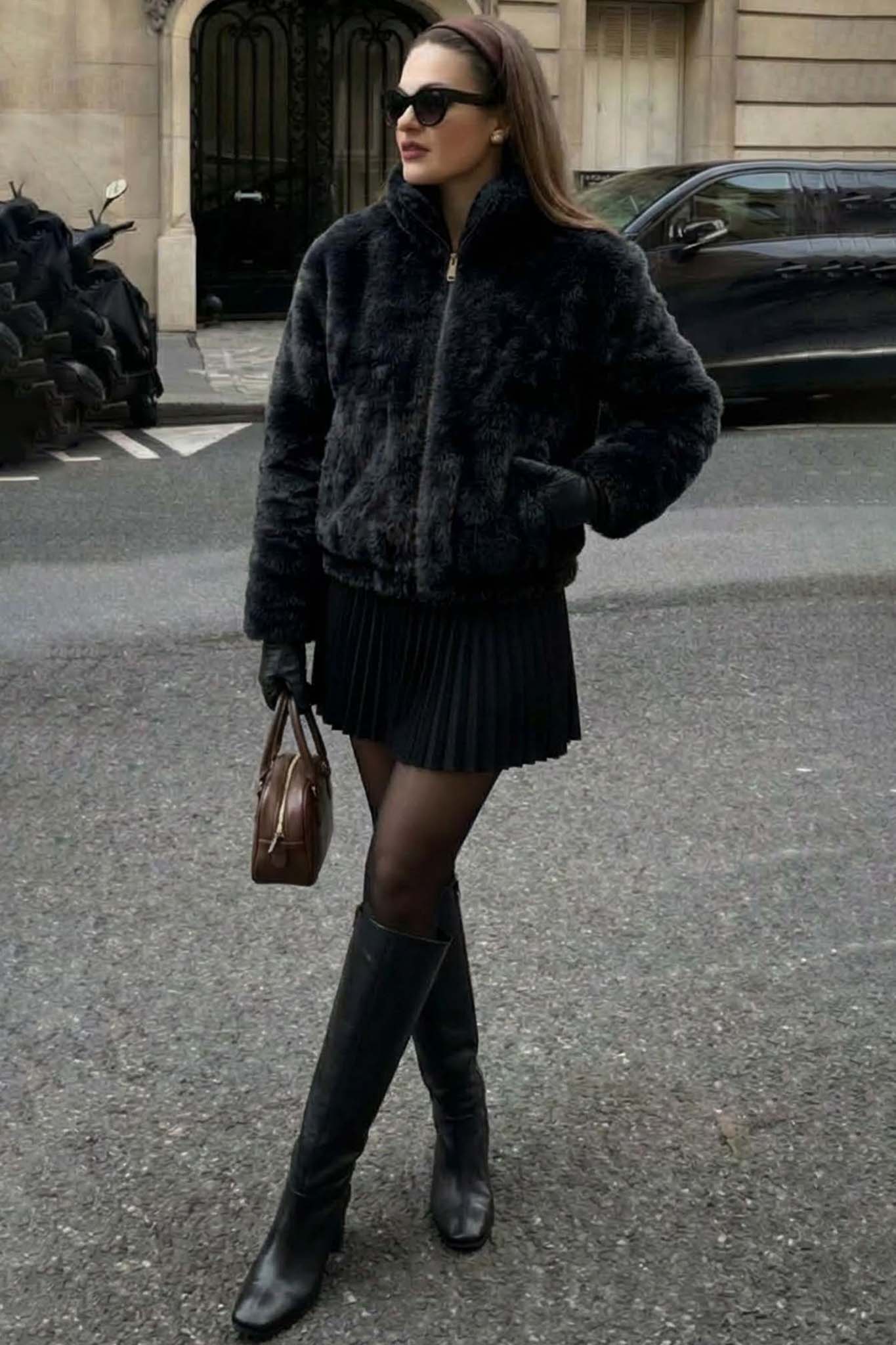 Opalκοντό γουνάκι τύπου bomber με φερμούαρ μαύρο