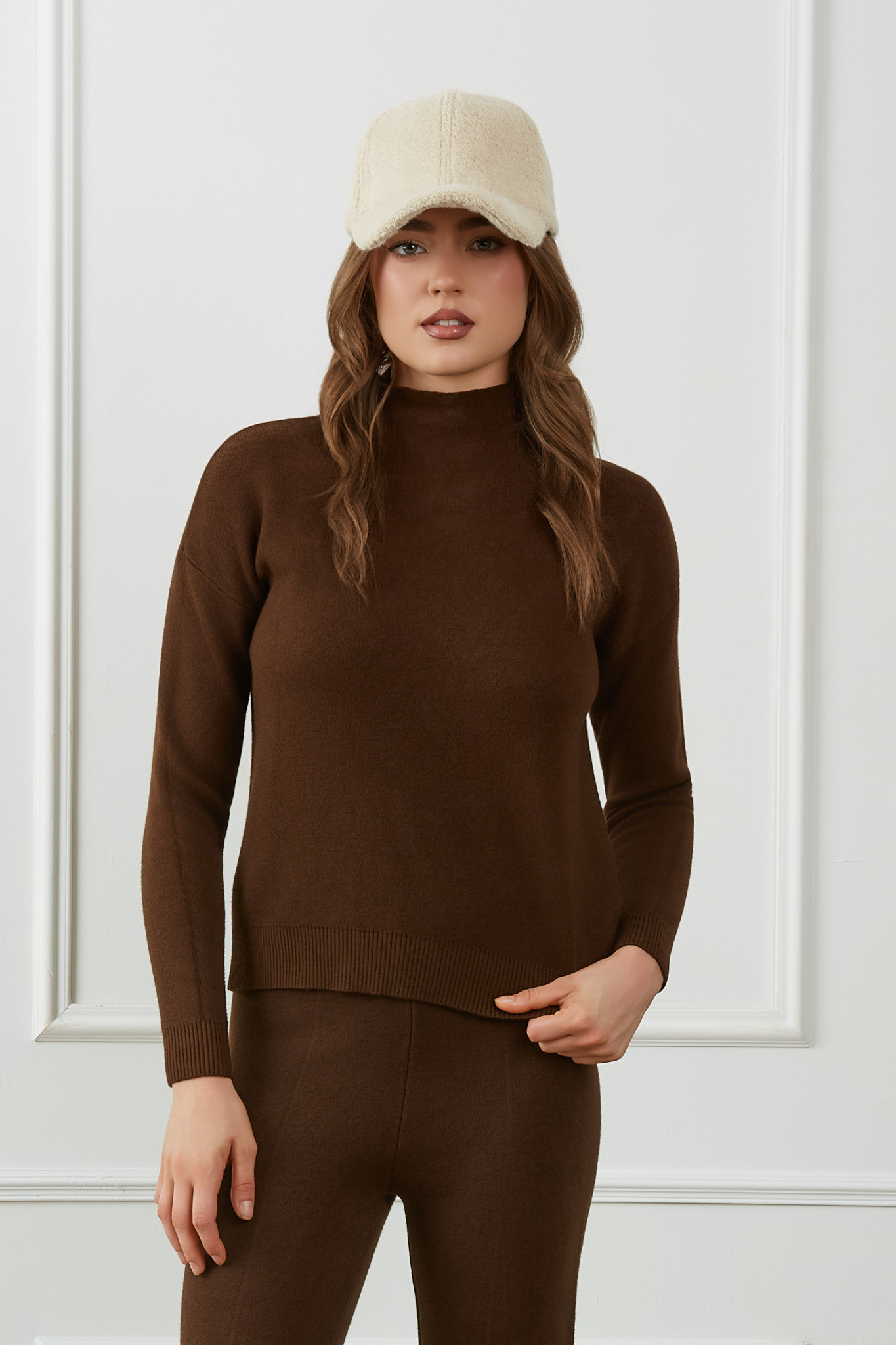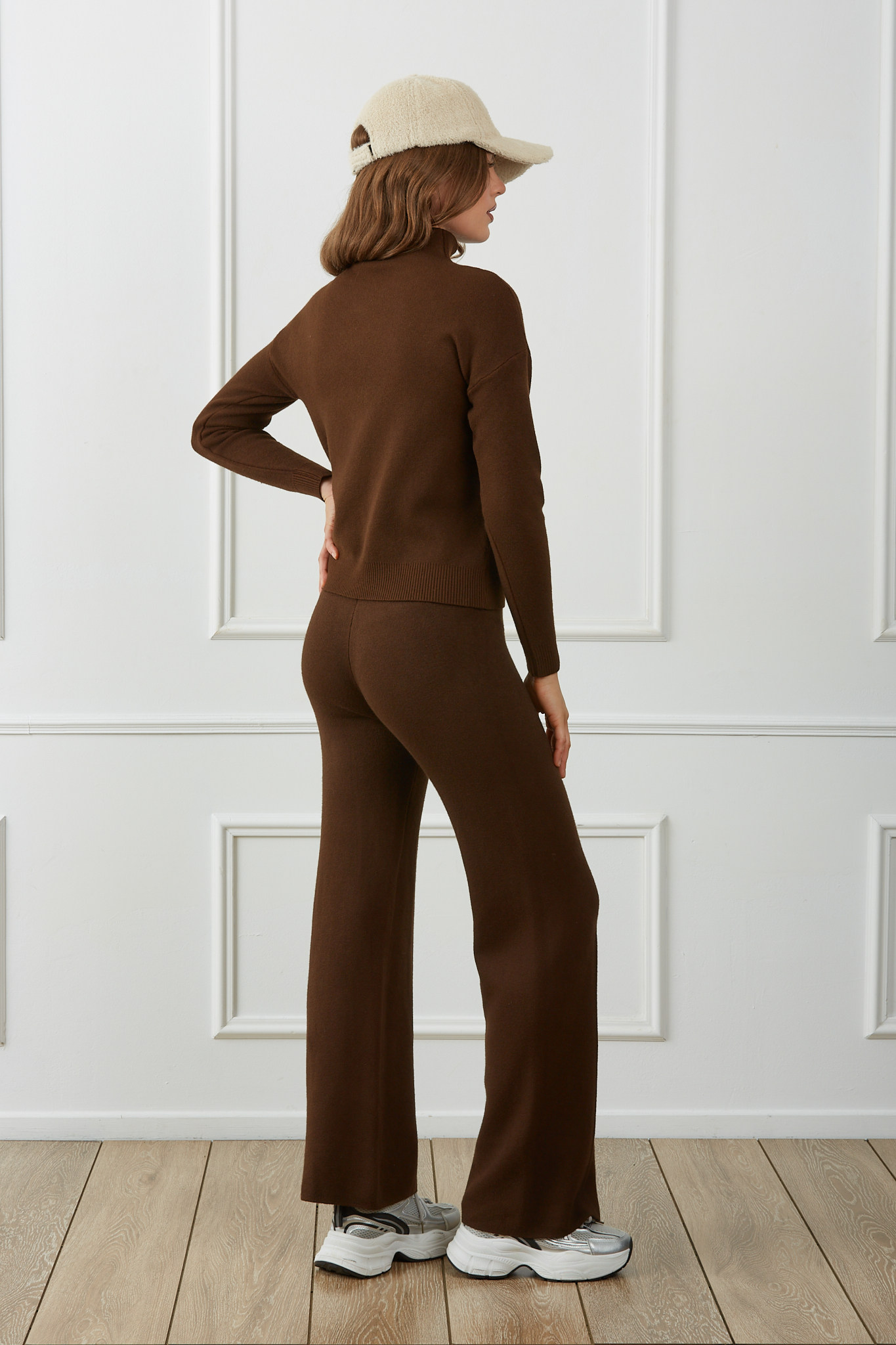 OrineleΠλεκτό Σετ Μπλούζα Παντελόνι καφέ
