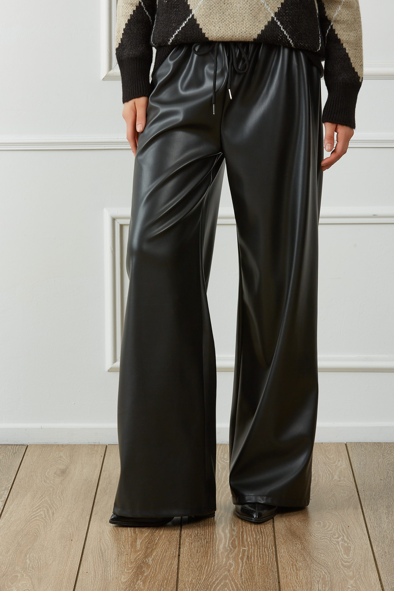 Palomaπαντελόνα από οικολογικό δέρμα μαύρο