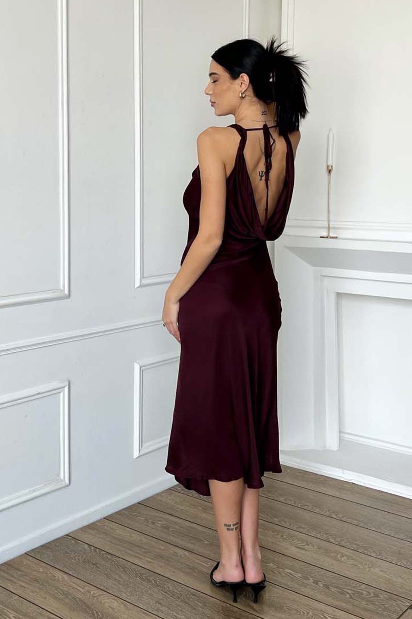 Μίντι σατέν φόρεμα με δέσιμο στην πλάτη. Ιδανικό για πρωινές ιδιαίτερες εμφανίσεις ή βραδινές.