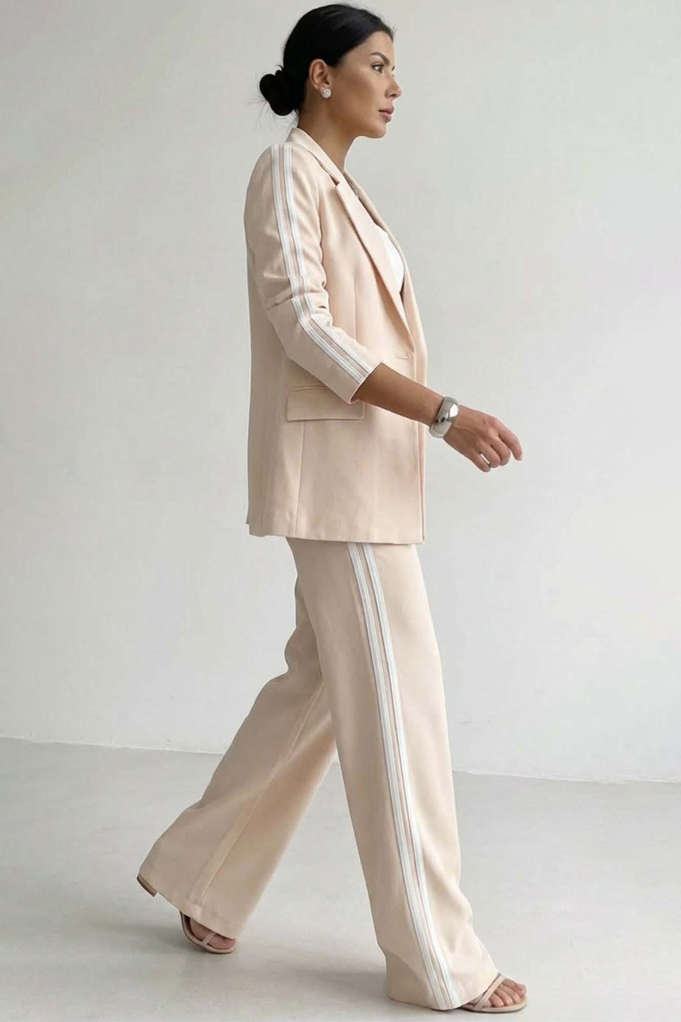 Patriciaσετ σακάκι παντελόνι με ρίγες στο πλάι μπεζ
