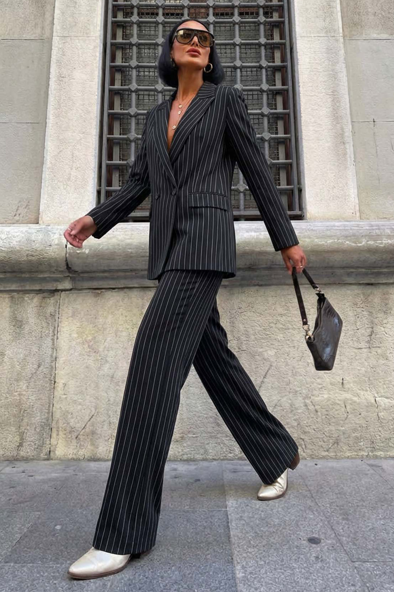 Patsyσετ σακάκι παντελόνι με ρίγες μαύρο