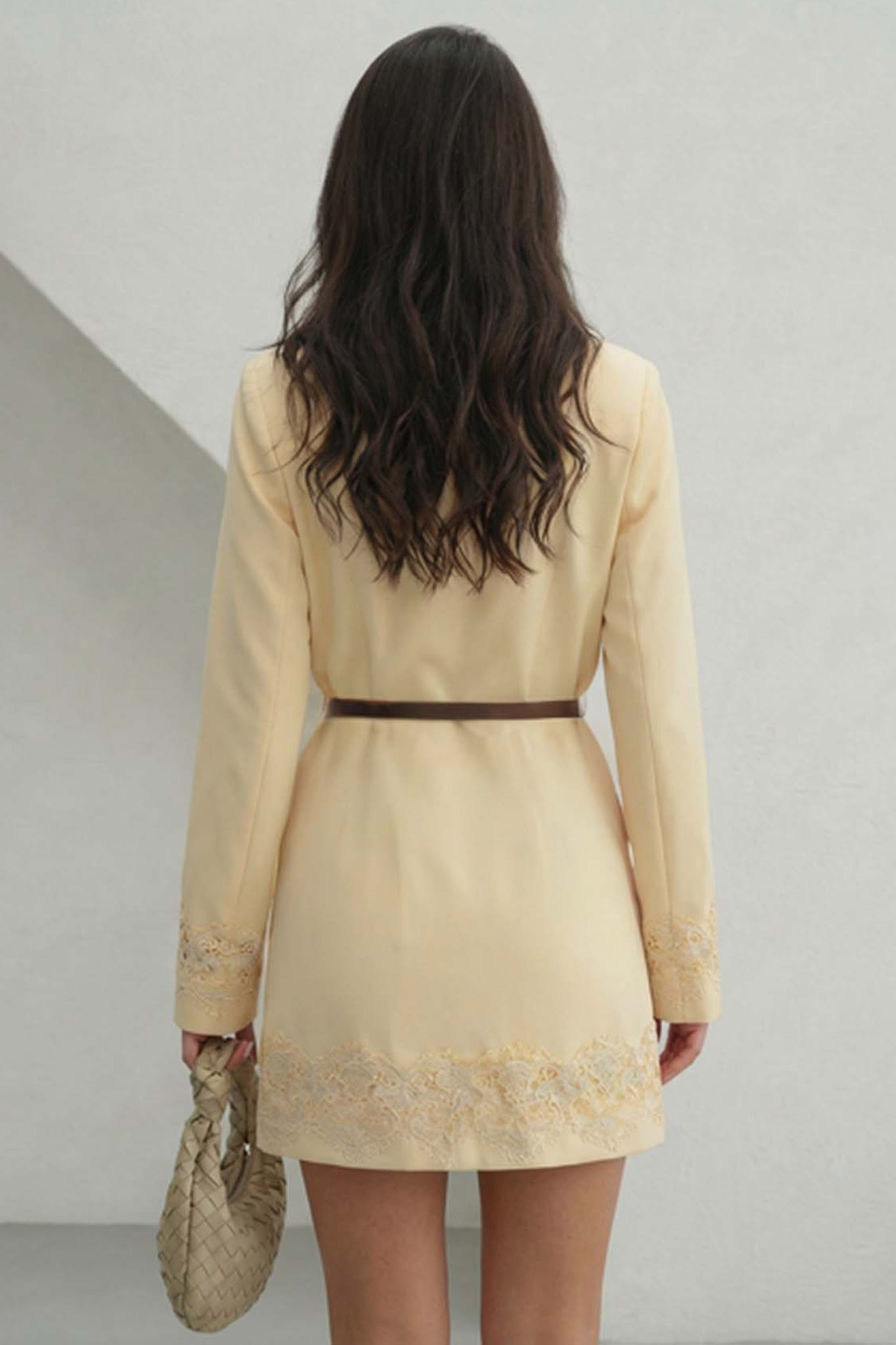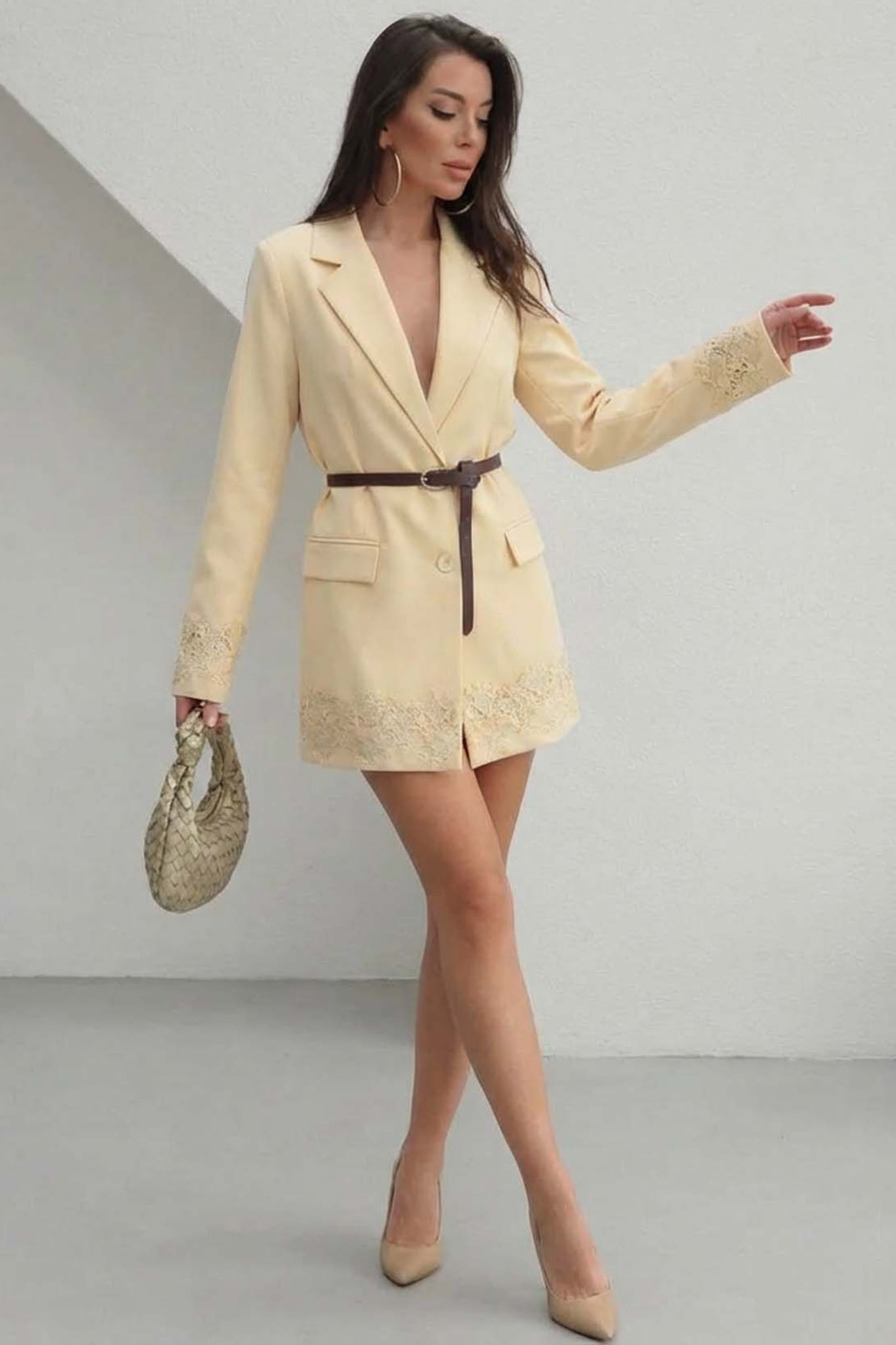 Pepperσακάκι με δαντέλα και ζωνάκι κίτρινο