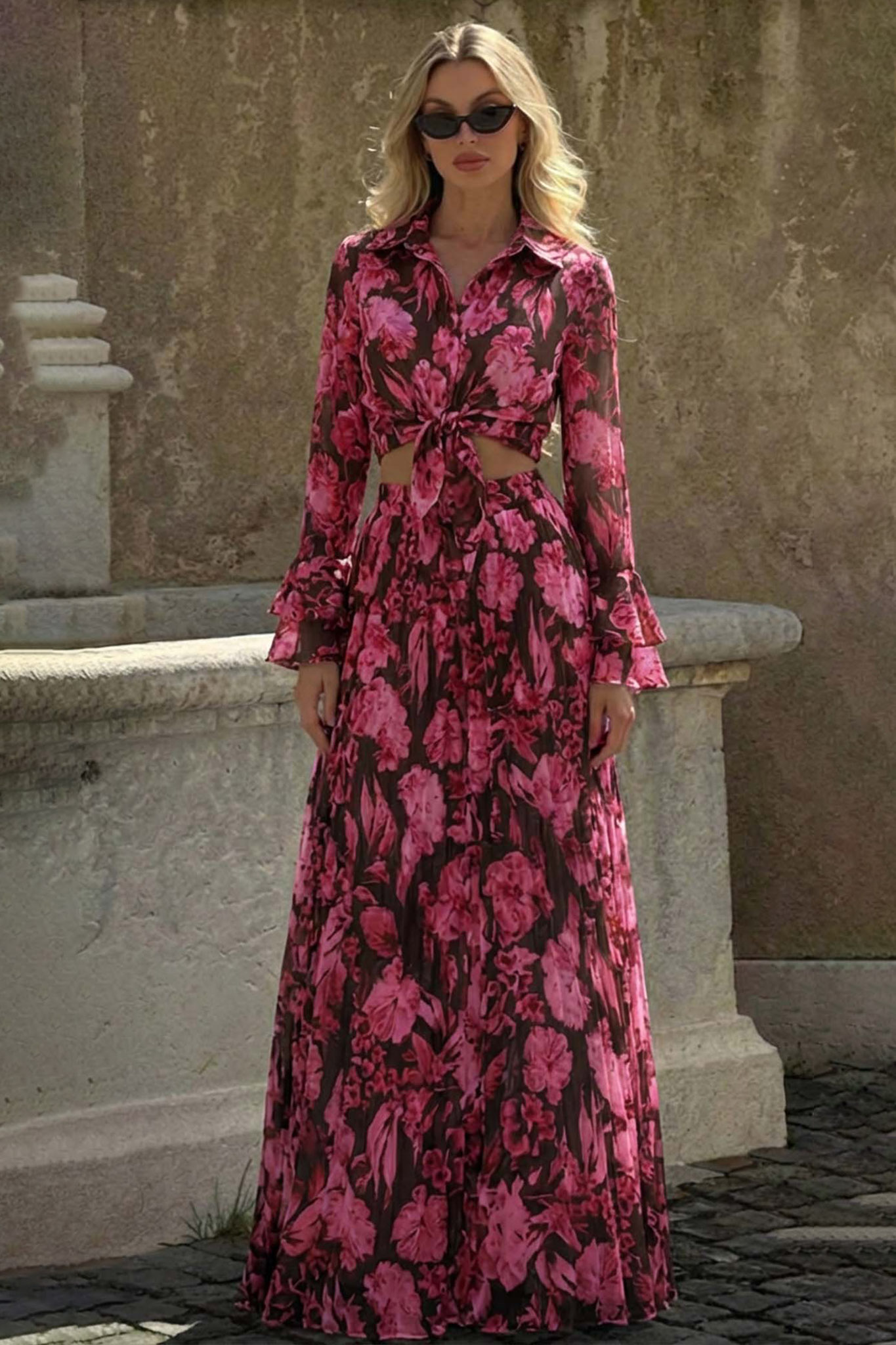 Σετ πουκάμισο με φούστα φλορά. Η φούστα είναι πλισέ με βολάν στο τελείωμα. Ιδανικό για ανοιξιάτικες εμφανίσεις από το πρωί έως το βράδυ.