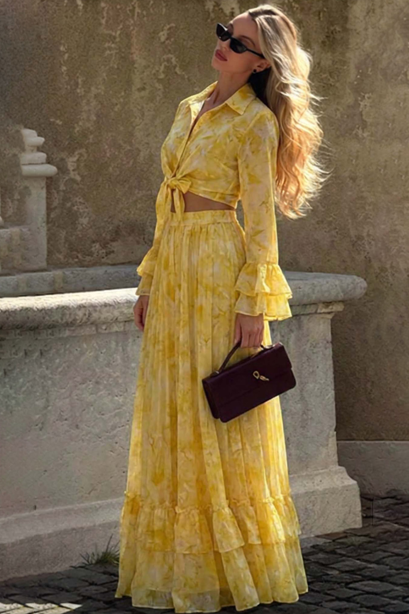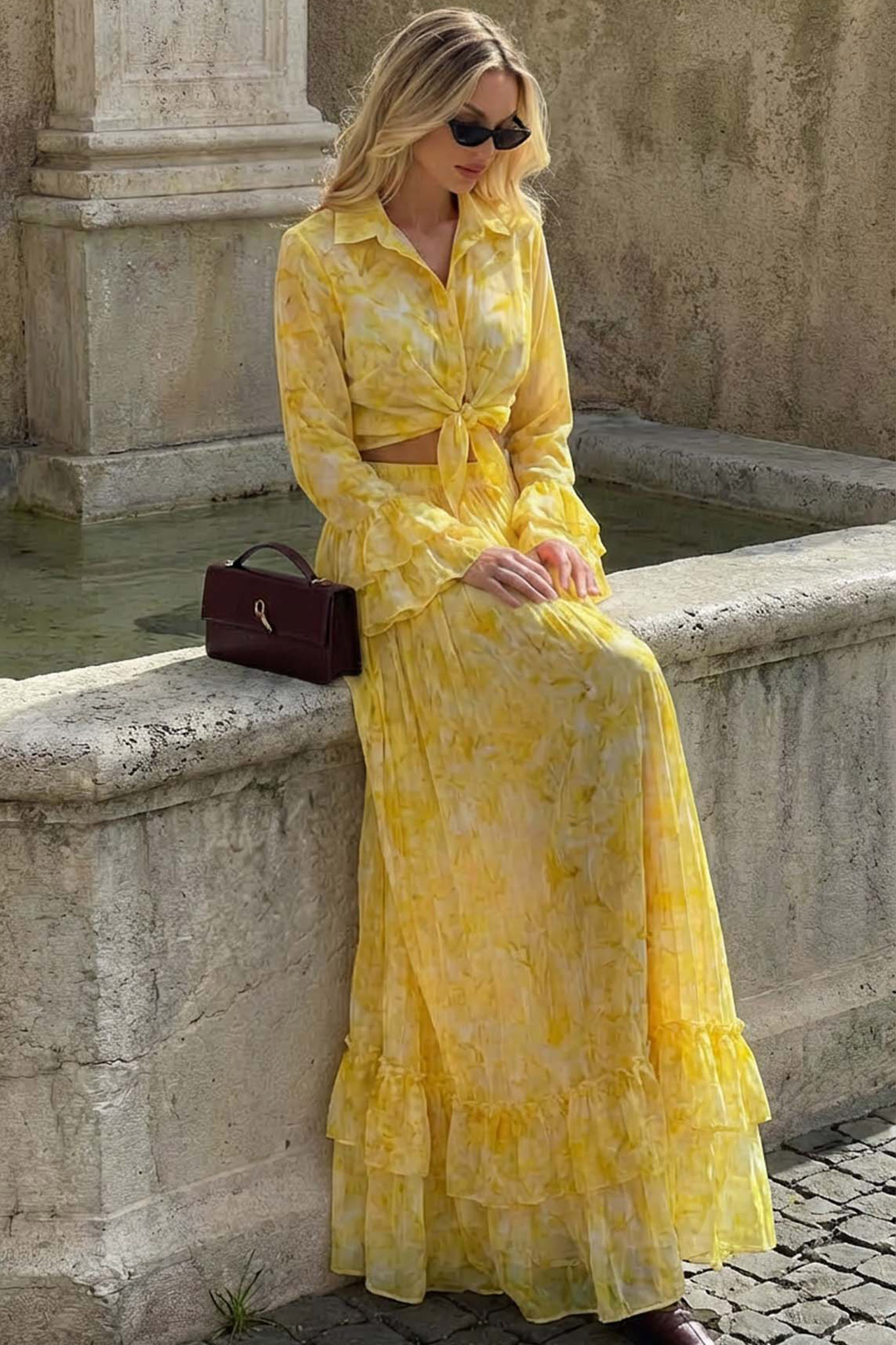 Petaliaφλοράλ σετ πουκάμισο φούστα κίτρινο