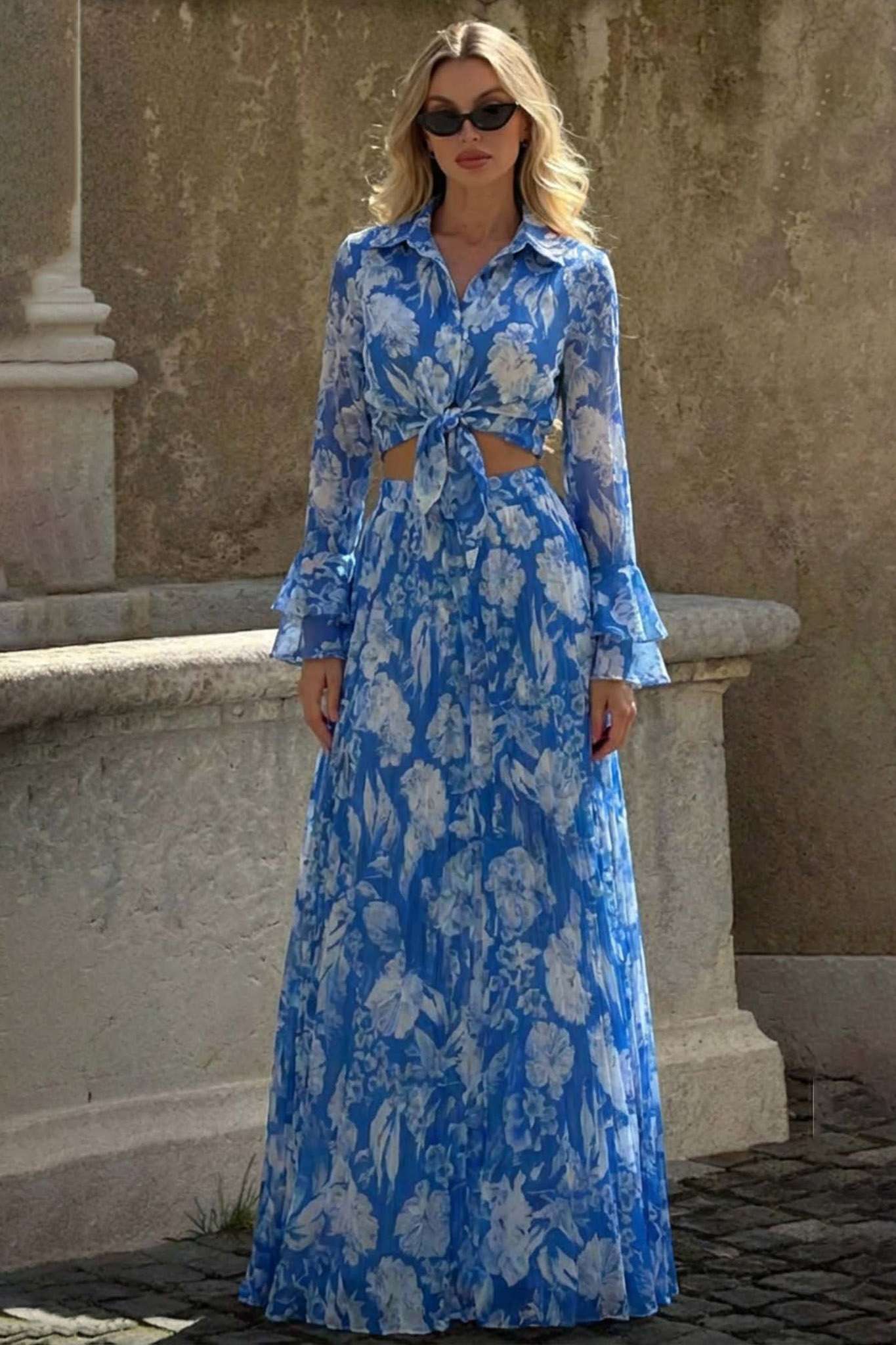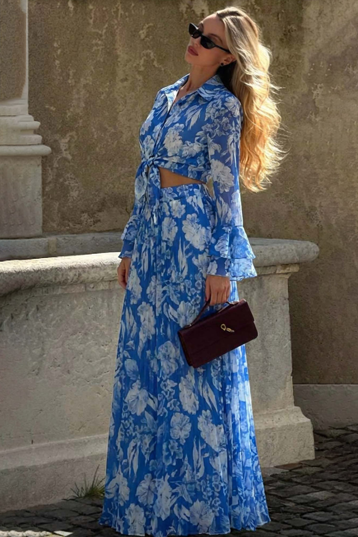 Petaliaφλοράλ σετ πουκάμισο φούστα μπλε