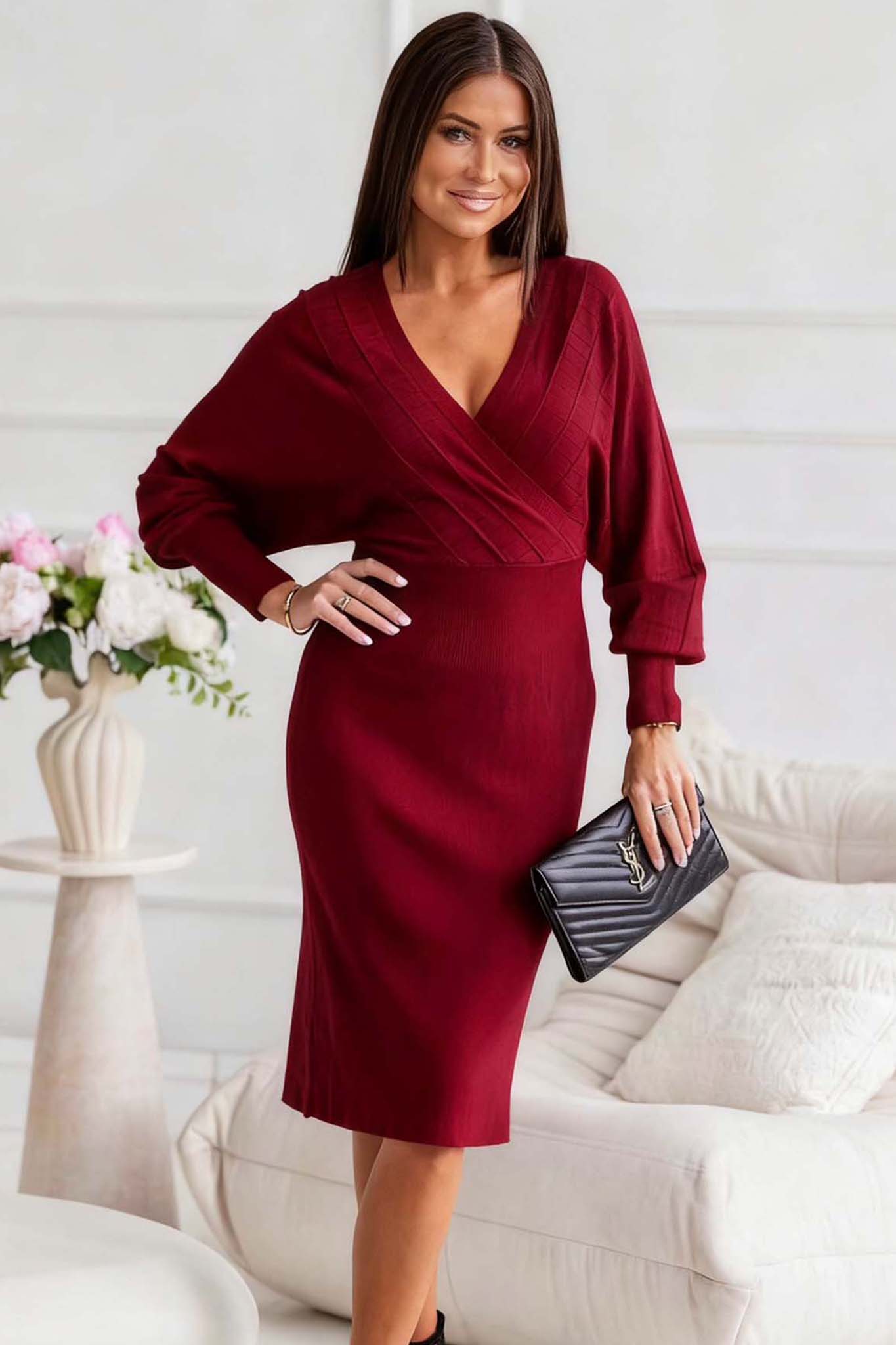 Μίντι φόρεμα με βαθιά v λαιμόκοψη. Ελαφριά πλέξη. Εφαρμοστό.