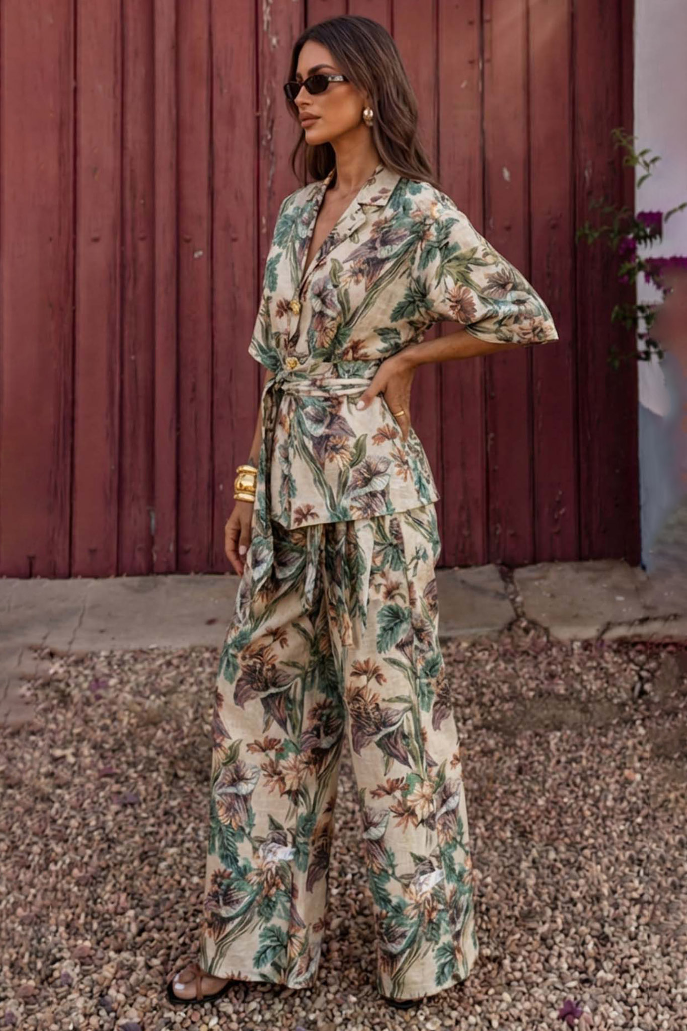 Αυτό το εντυπωσιακό φλοράλ σετ είναι η ιδανική επιλογή για κομψές και θηλυκές εμφανίσεις, από το πρωί έως το βράδυ. Το σύνολο αποτελείται από δύο κομμάτια που συνδυάζουν την άνεση με την υψηλή αισθητική