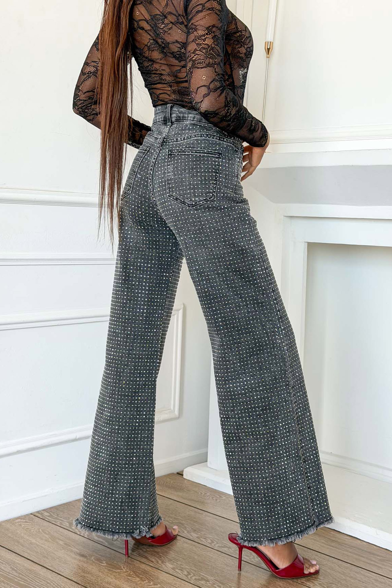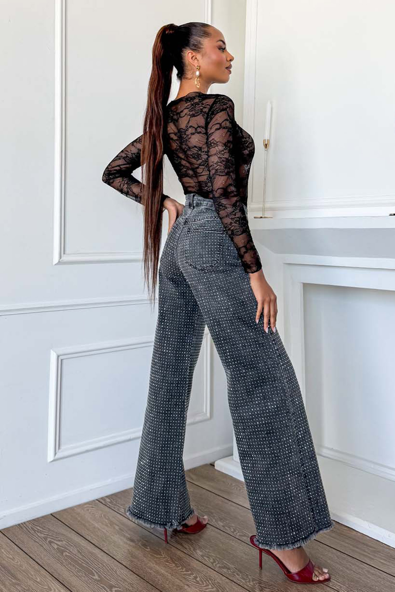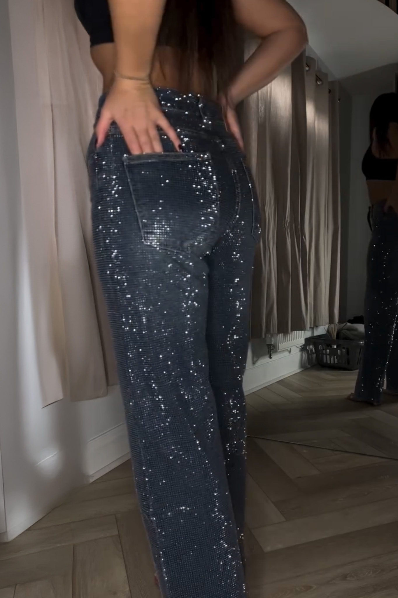 Τζιν παντελόνι με all over στρας. Εφαρμοστό στην σιλουέτα και ελαστικό ταυτόχρονα. Προσφέρει ένα λαμπερό & statement αποτέλεσμα. Ιδανικό για βραδινές εξόδους, parties, events, γιορτινές περιστάσεις.