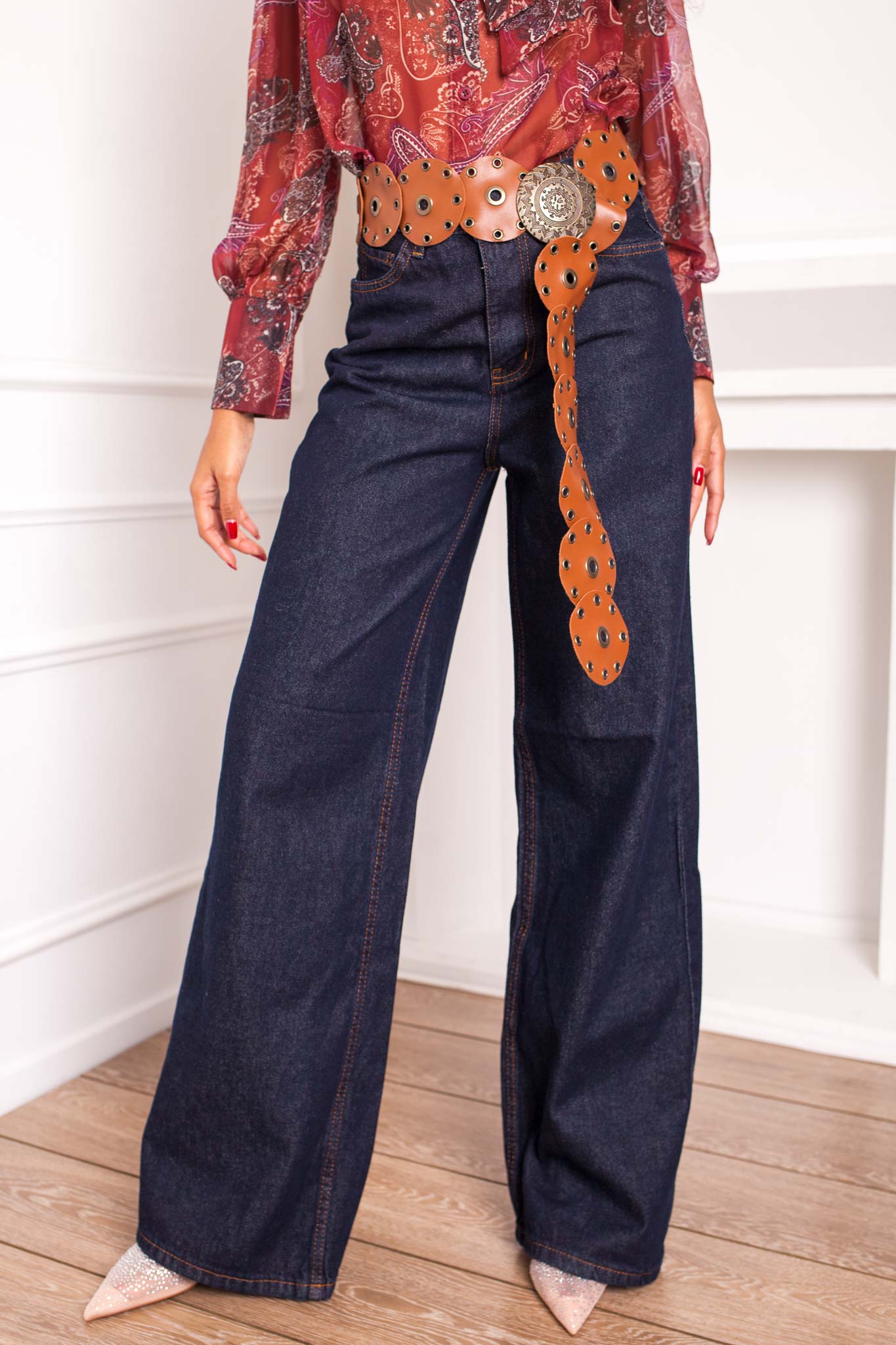 τζιν παντελόνι με ζώνη μπλε σκούρο