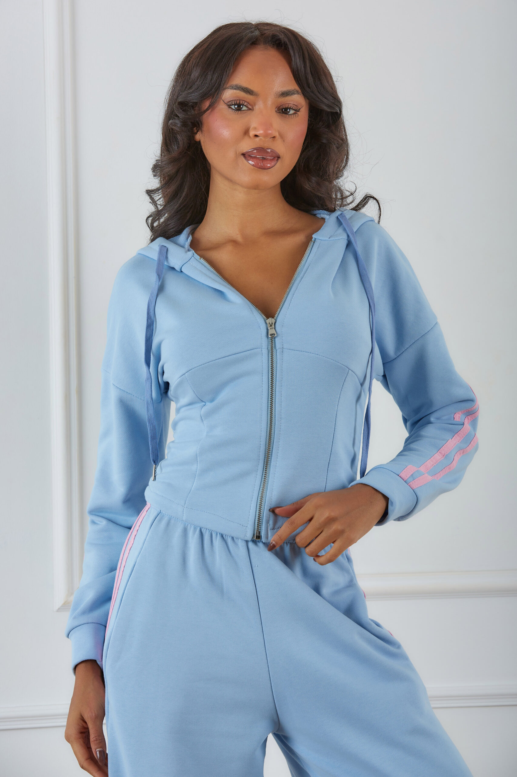 Ζακέτα με ρίγες στο πλάι και κουκούλα.