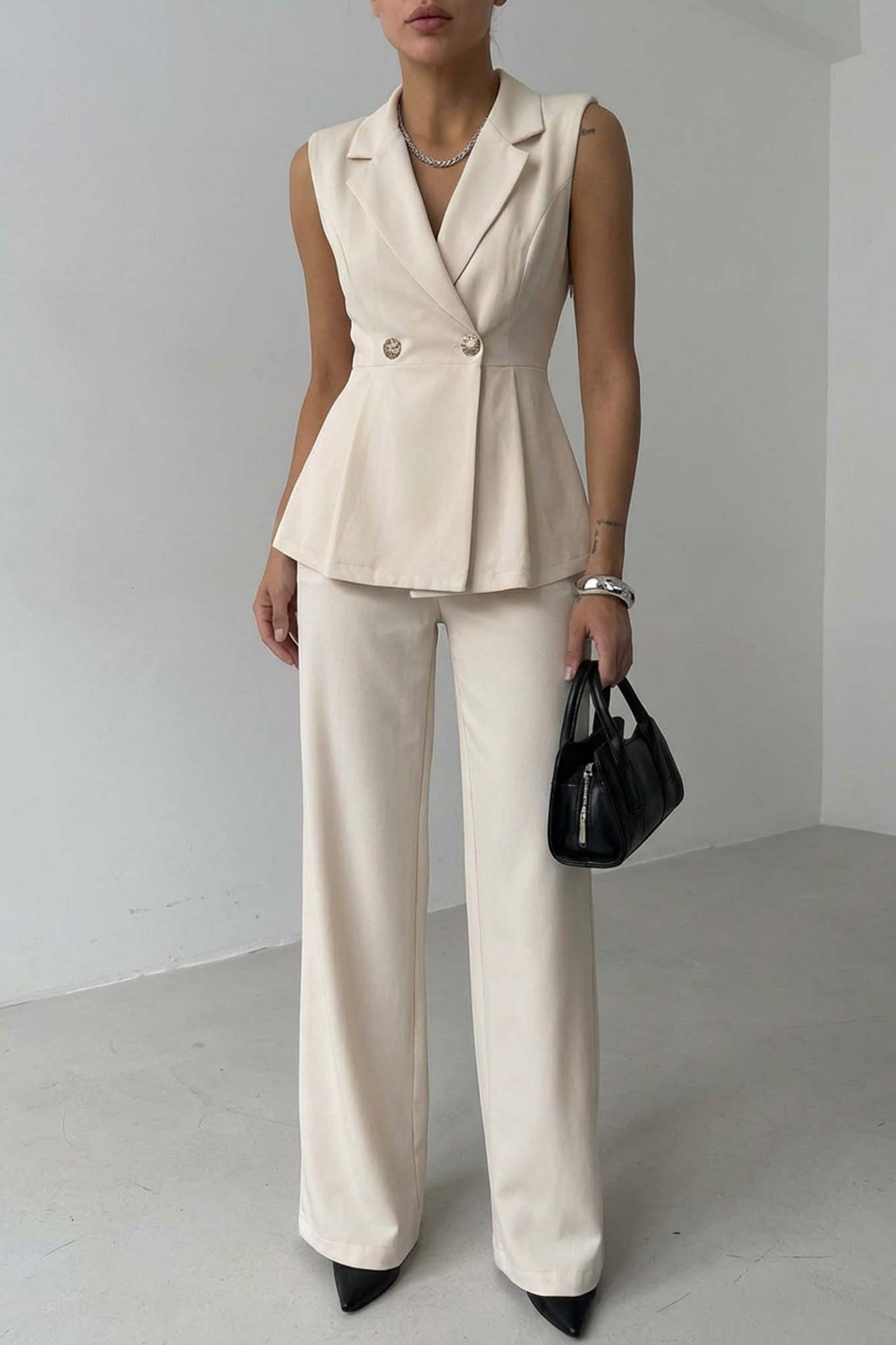 Properσετ αμάνικο γιλέκο παντελόνι εκρού