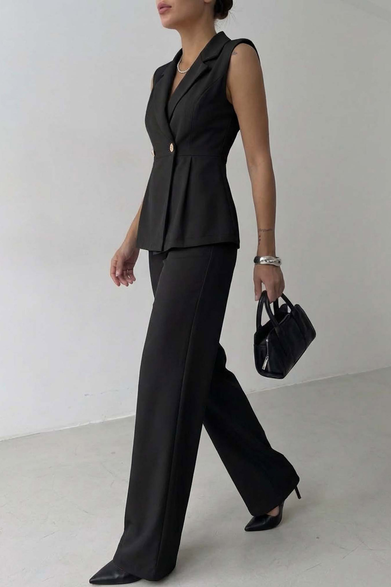 Properσετ αμάνικο γιλέκο παντελόνι μαύρο