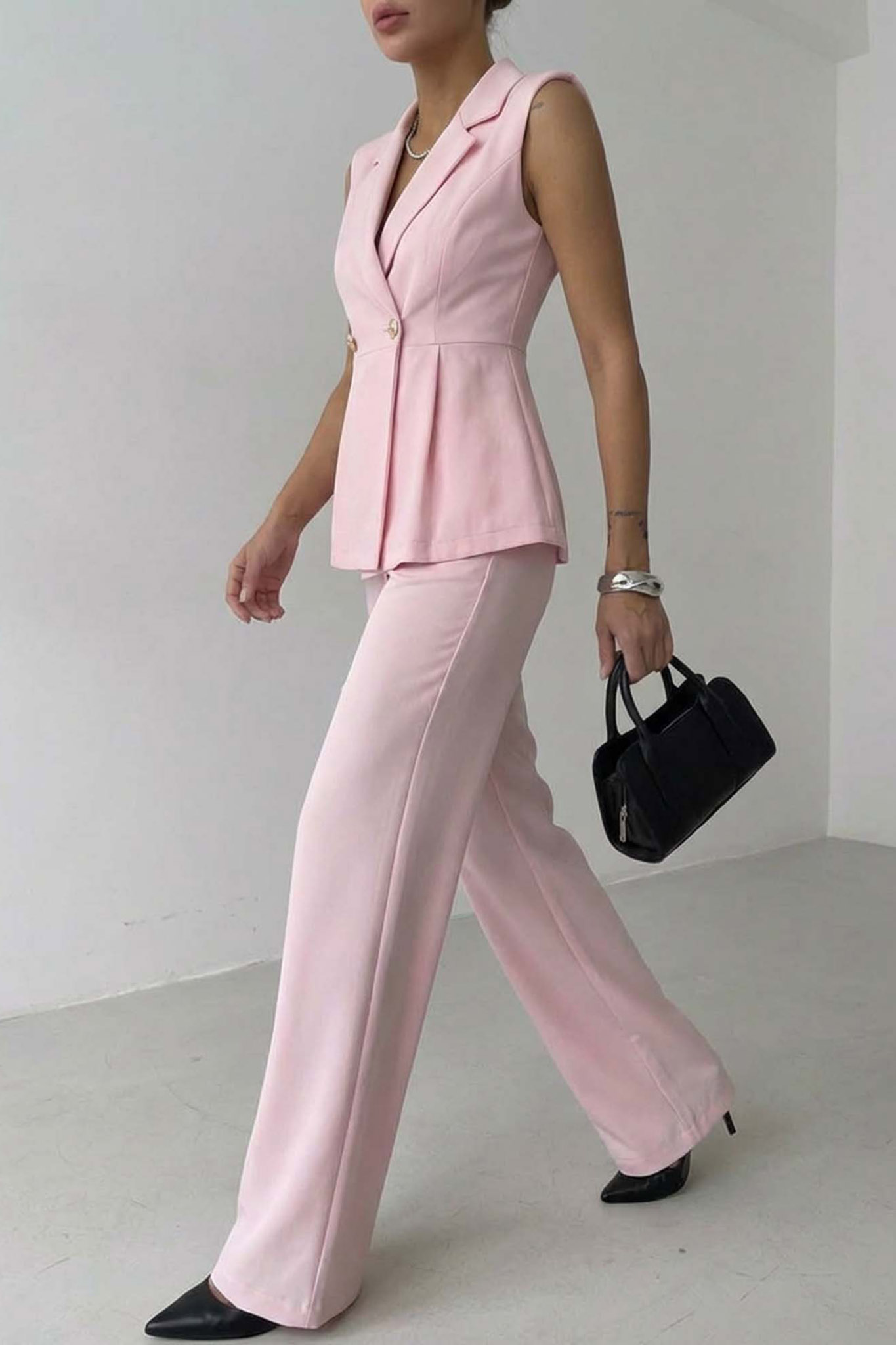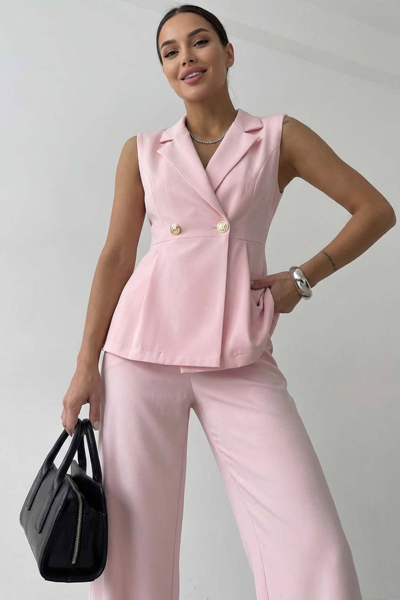 Properσετ αμάνικο γιλέκο παντελόνι ροζ