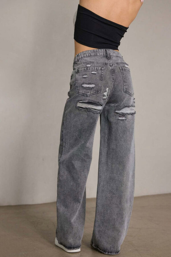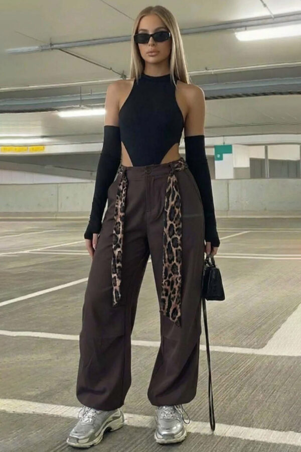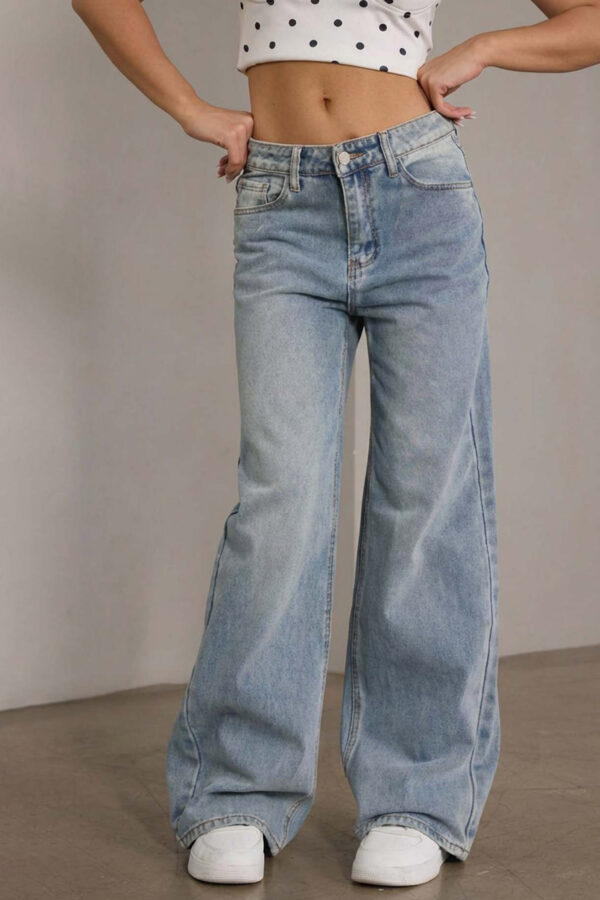 Τζιν παντελόνι με leopar print. Ψηλόμεσο παντελόνι με κάμπανα τελείωμα. Κλείνει με φερμουάρ και κουμπί.