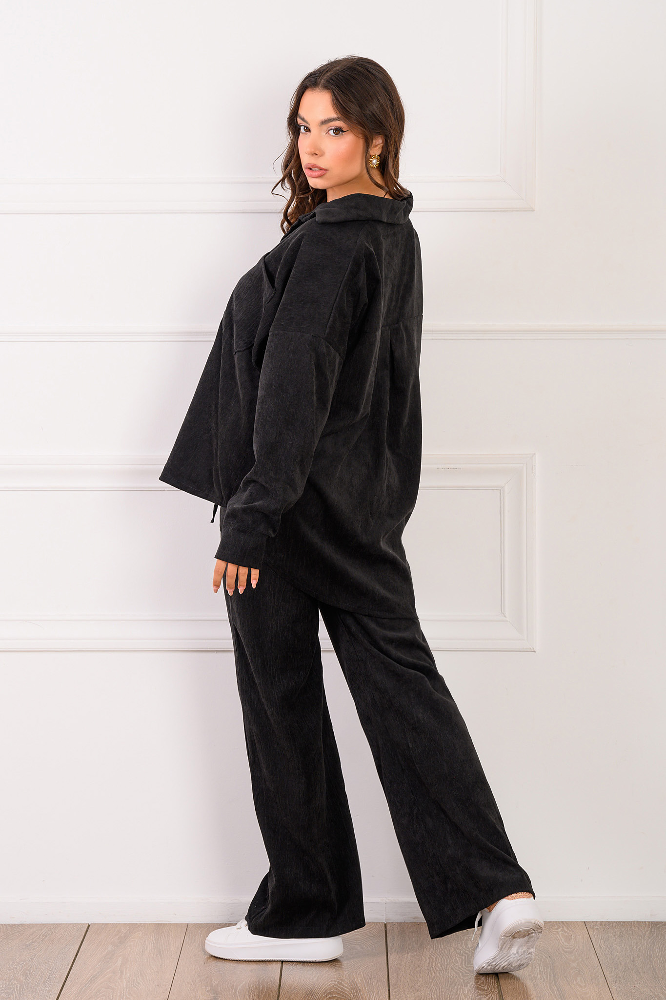 σετ πουκάμισο-παντελόνι κοτλέ μαύρο