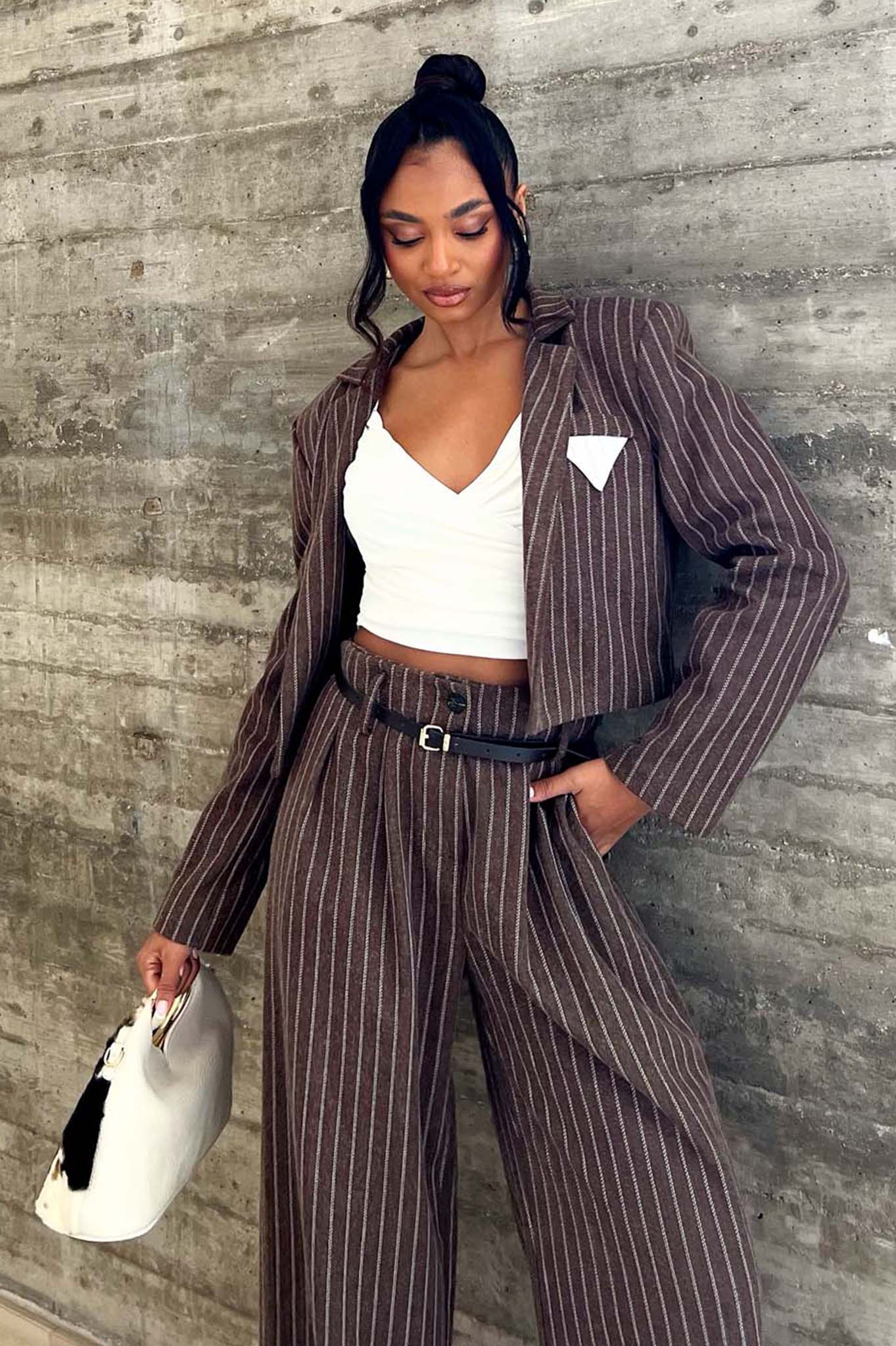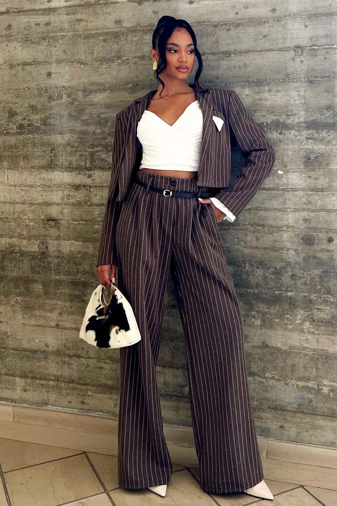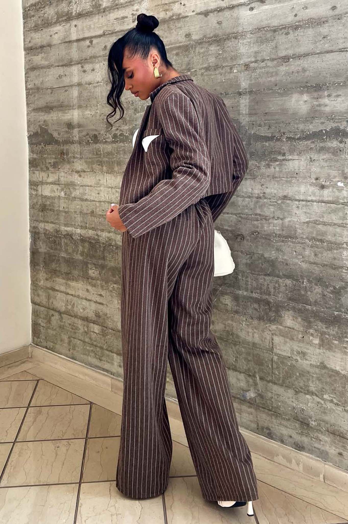 Ριγέ σετ στα απόλυτα χρώματα του χειμώνα. Ιδανικά για την καθημερινότητα αλλά και για επίσημες εμφανίσεις που θα ξεχωρίσουν. Μήκος 45cm, στήθος 50cm, μανίκι 60cm, μήκος 112cm, μέση 35cm.
